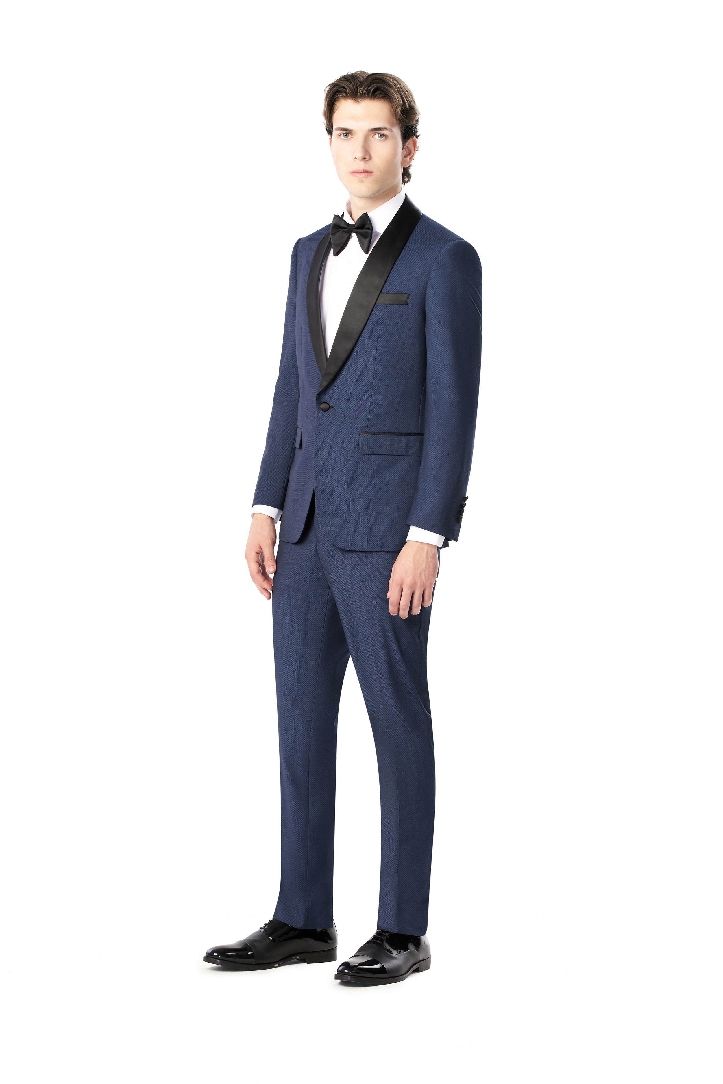 Medium Blue Diamond Texture Shawl Lapel Tuxedo