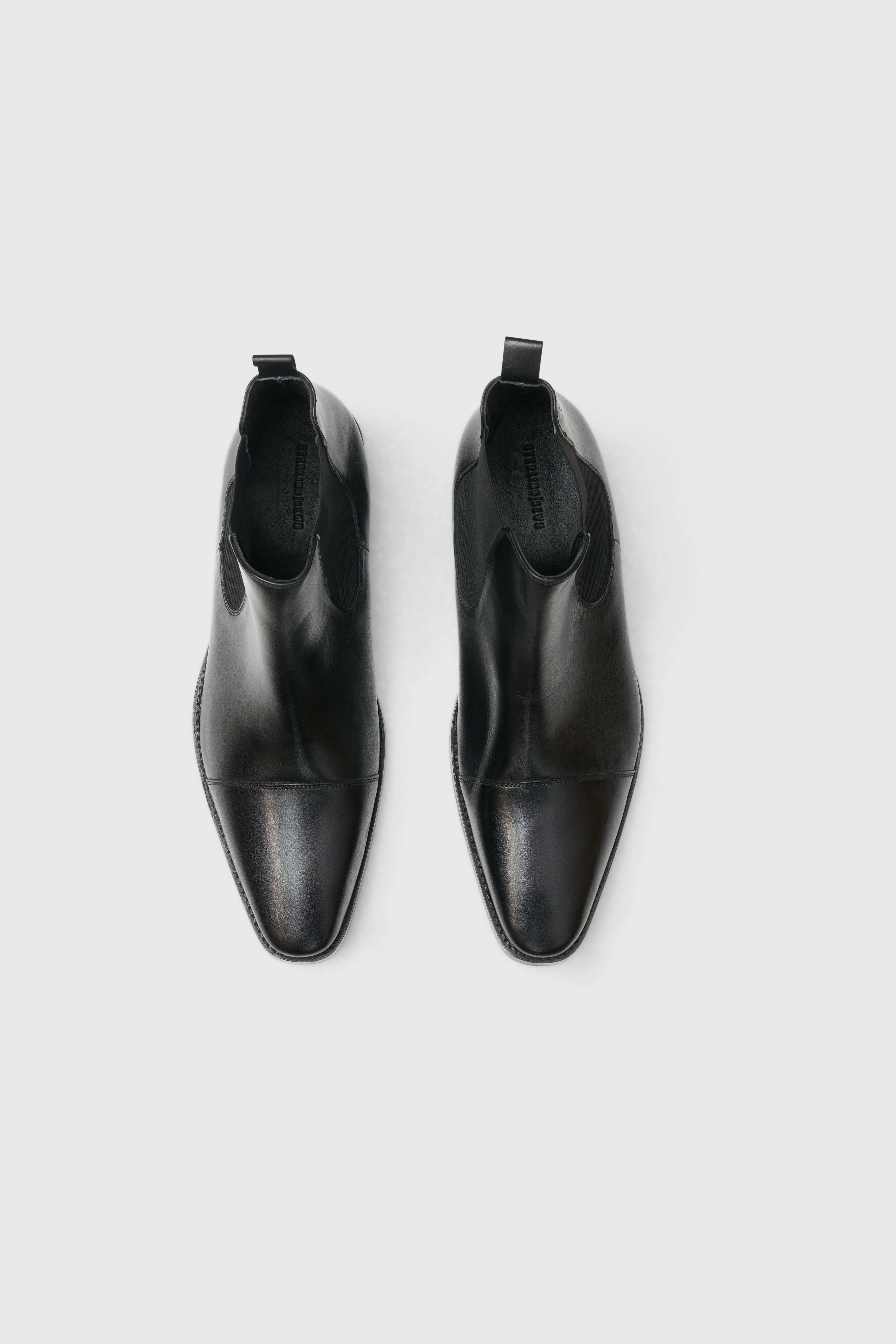 The Black Leather Chelsea Boot is a premium quality, full-grain genuine leather boot. It has a full leather outsole with a half rubber overlay for durability, and an inner sheep leather lining for comfort. The premium memory foam insole provides added cushioning and comfort. Chelsea boots are close-fitting, ankle-high boots with an elastic side panel that make them easy to put on and take off. They are typically worn with a casual suit or even jeans and chinos.