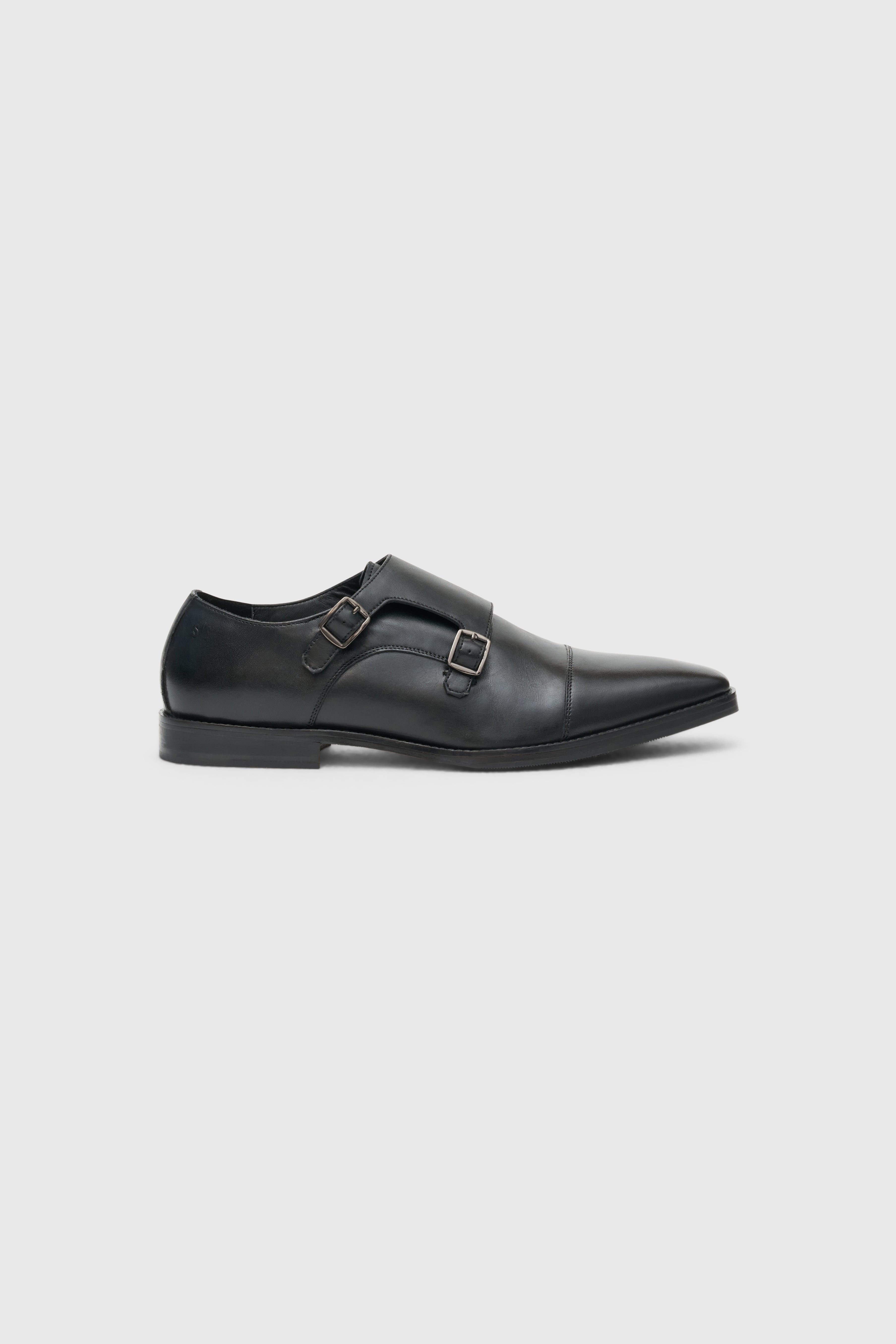 Double Monk Strap Black Shoes