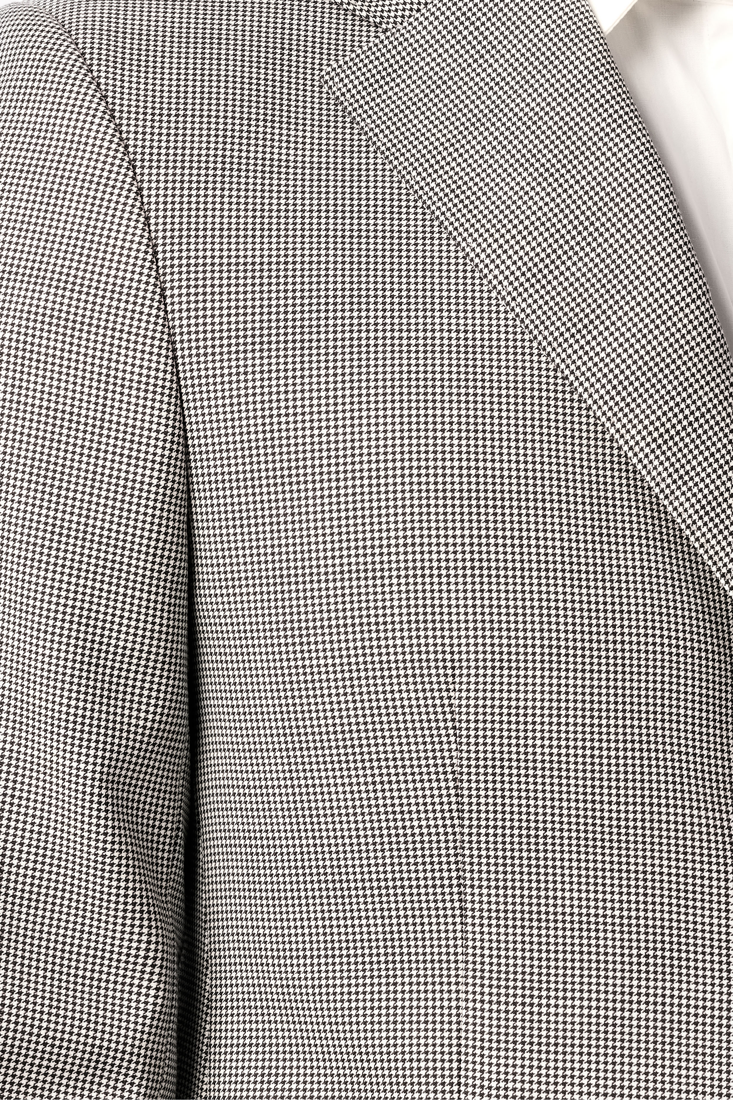 Embrace the enduring charm of the black and white houndstooth design, a pattern that exudes sophistication and versatility. Crafted from 100% Italian wool, this suit offers a luxurious feel and impeccable drape, ensuring you look polished and feel confident. The iconic houndstooth weave, combined with the premium 1/2 canvas lining, provides breathability and durability, making this suit a standout choice for the discerning gentleman.