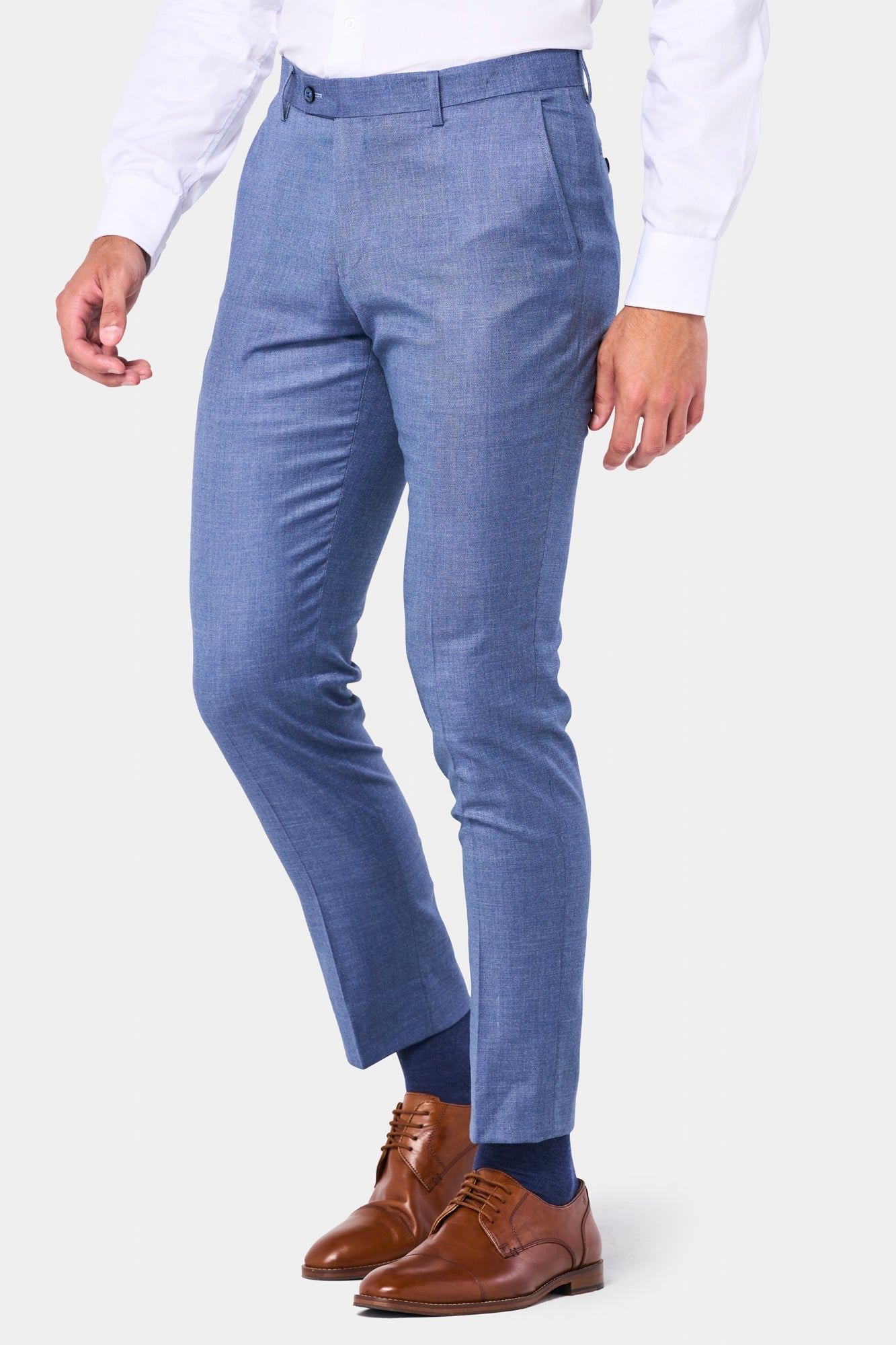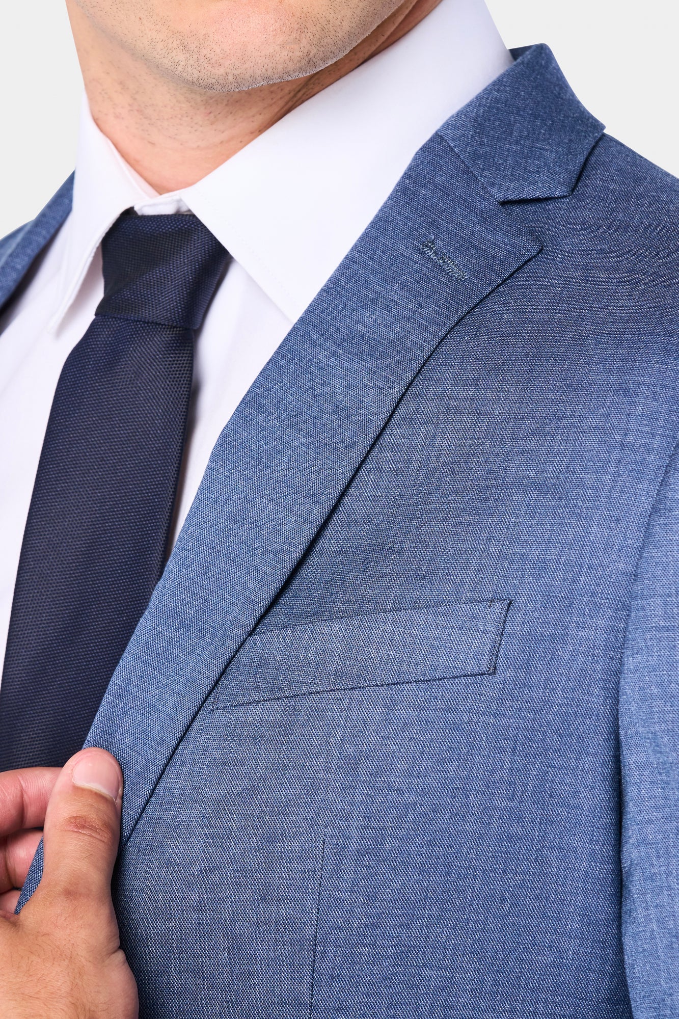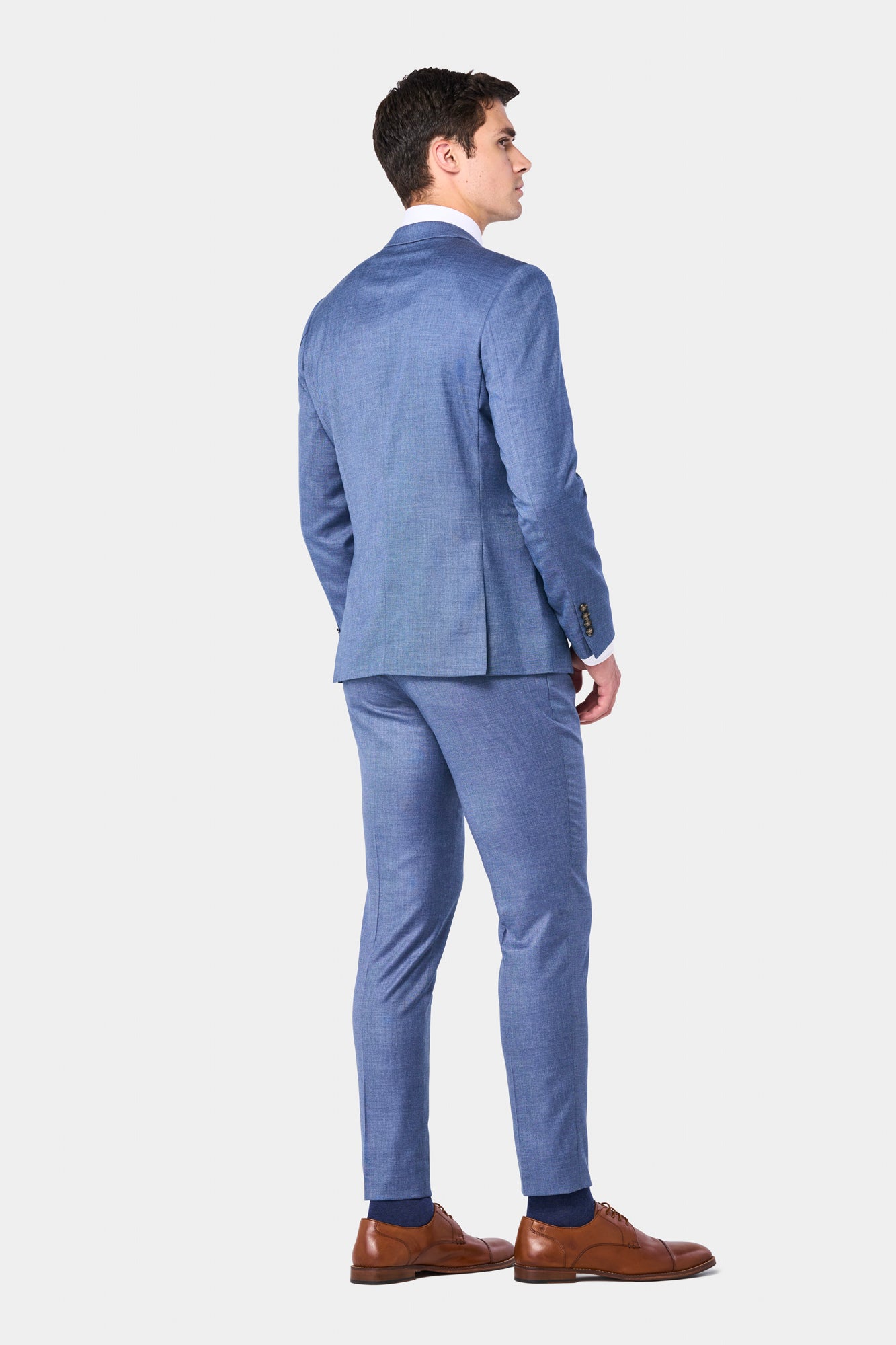 Achieve the refreshingly stylish and modern look you always wanted with this blue sharkskin two-button suit. Made from premium quality sharkskin textured fabrics, this elegant two-button blue suit exudes elegance and sophistication. The suit features a classic notch lapel collar and a two-button jacket closure, which create a sharp and elegant look. Also, its timeless design makes it perfect for both business and formal occasions.