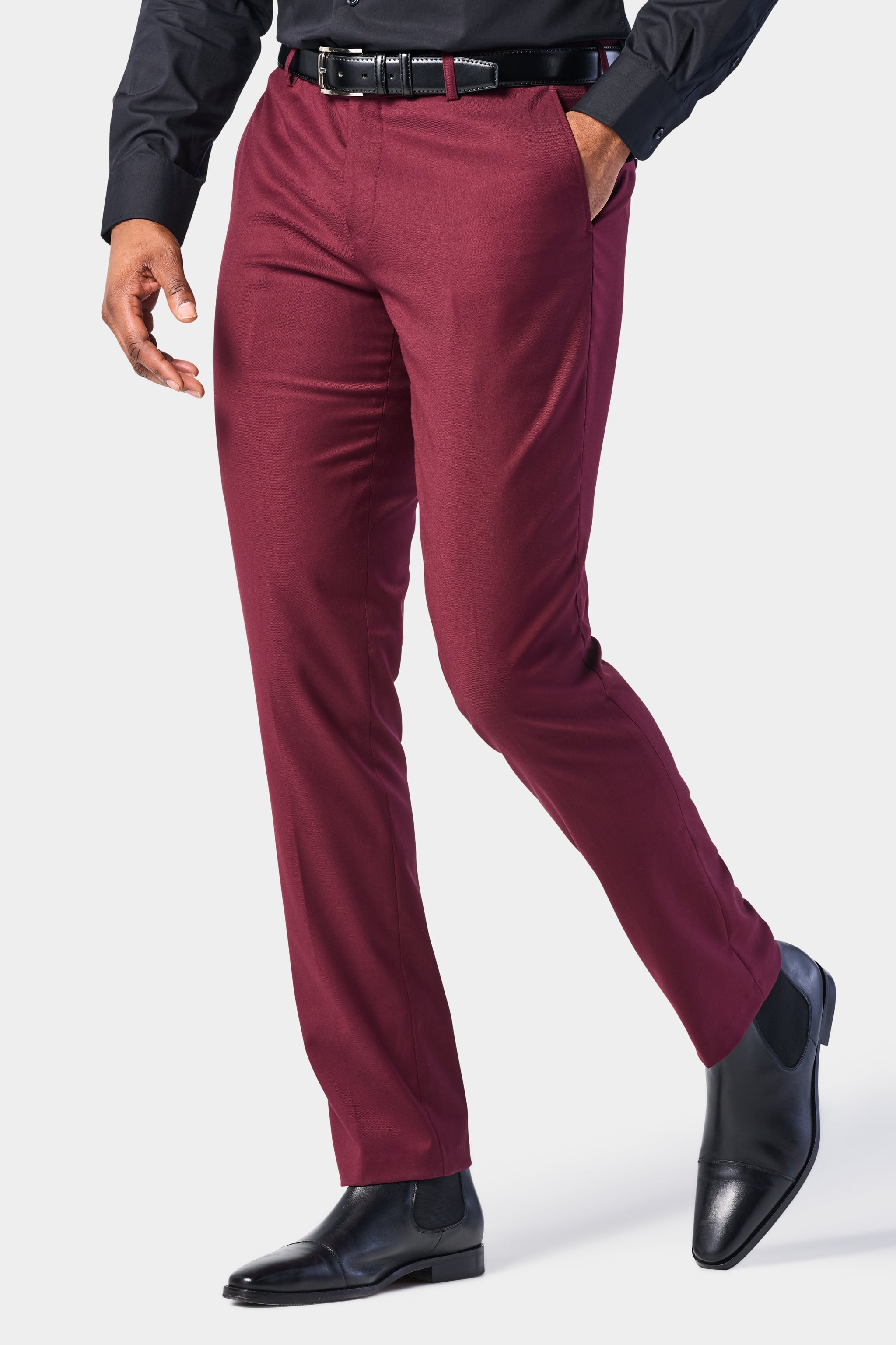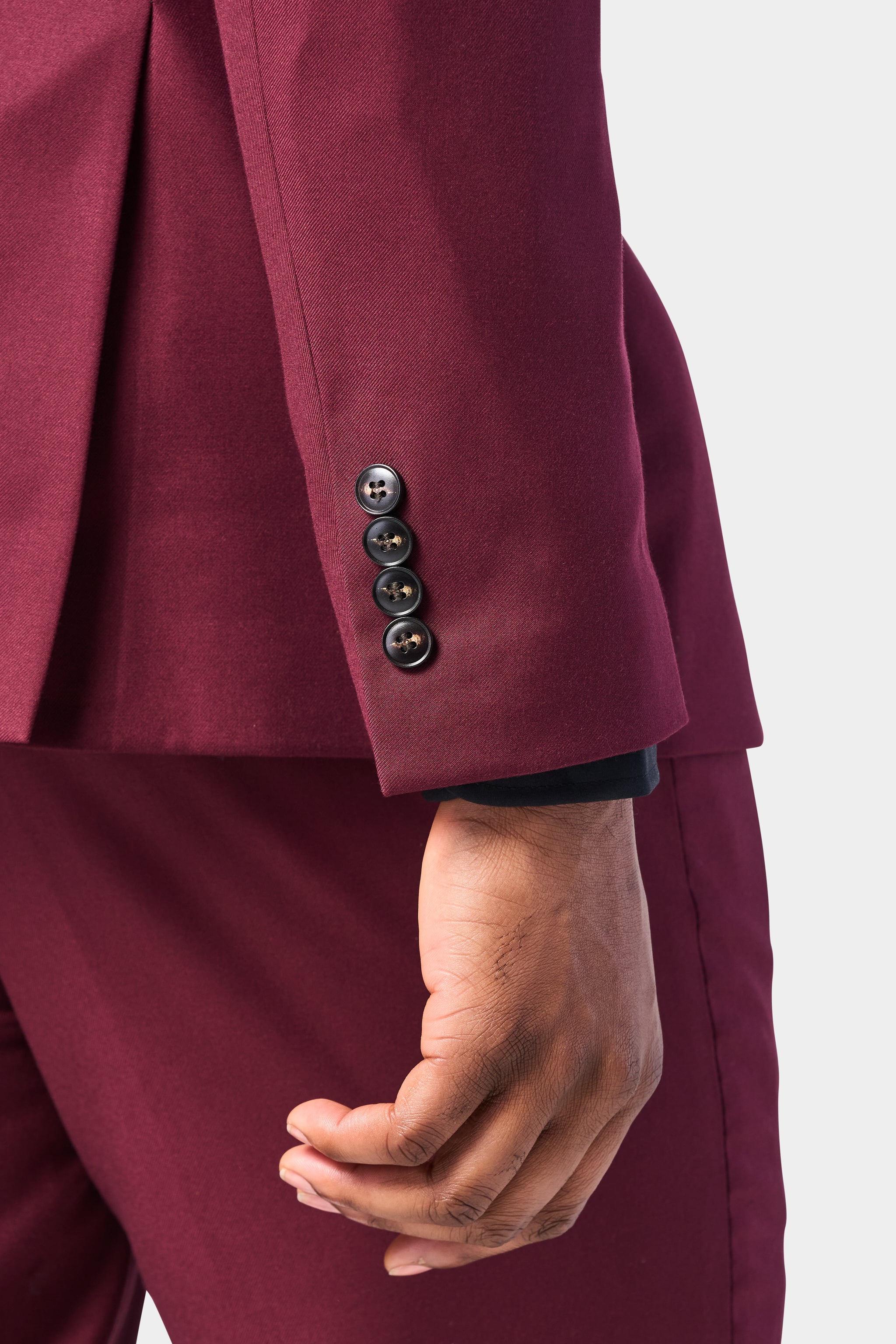 What's more, this suit is suitable for different events, including weddings, work meetings, and formal occasions. You can pair it with a white or light blue shirt, subtly patterned silk tie, and oxfords for an authoritative look. You can also complement it with a colorful pocket square and shined leather loafers for a more festive and fun look. The burgundy color makes an instant statement that will help you look sharp and chic.