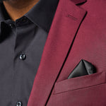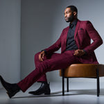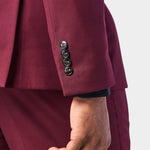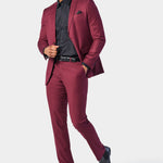 Featuring precise tailoring, resilient stretch fabrics, and a versatile burgundy hue, this two-button suit offers the complete package. Its bold, vivid hue allows you to seamlessly transition from seasonal weddings to professional settings. This suit will make you look stunning and bring out the elegant gentleman in you.