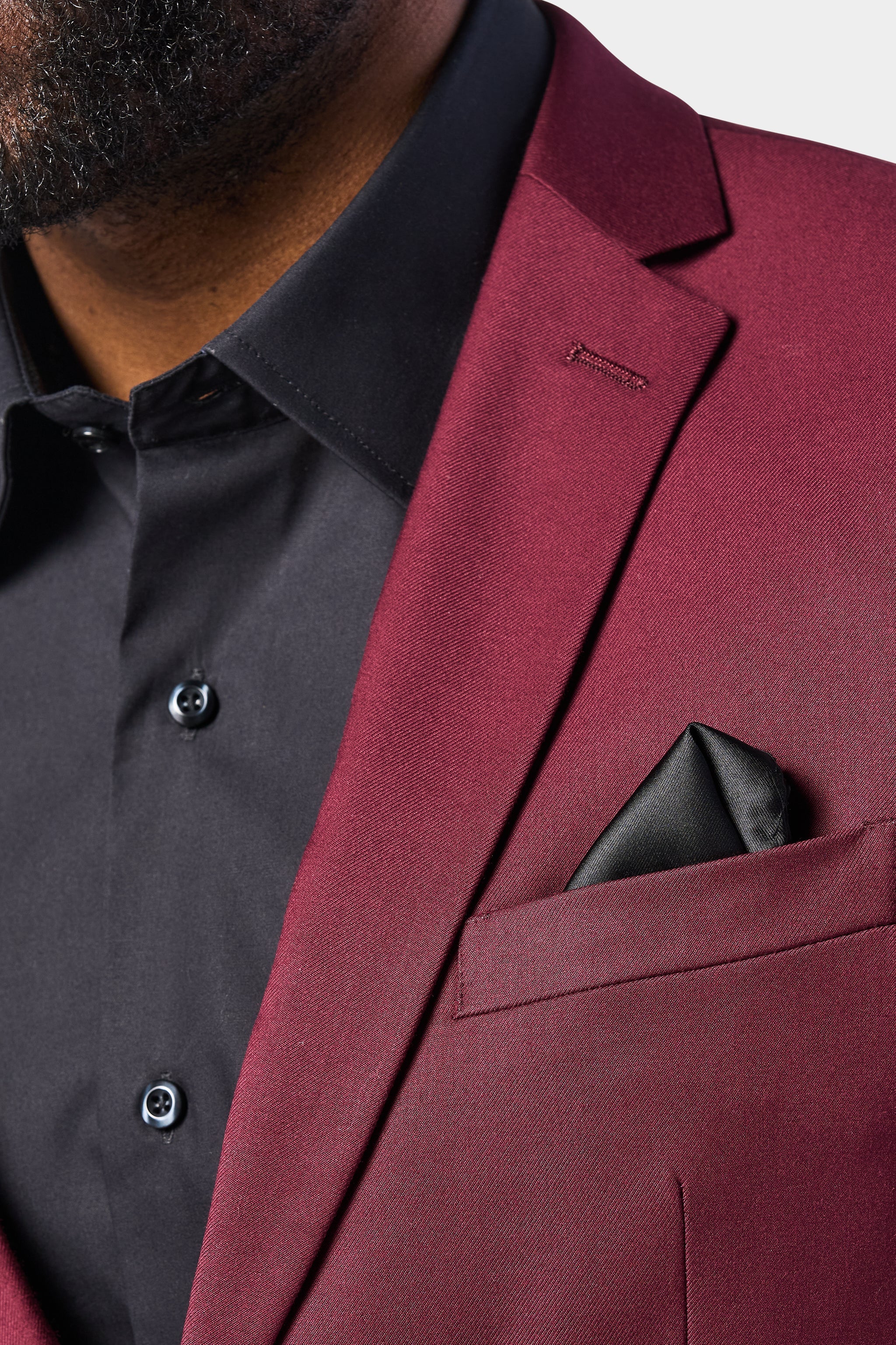 Look sharp and fashionable in this bold burgundy suit. Crafted with a traditional notch lapel collar and two-button jacket closure, this suit defines sophistication and class. Also, it is paired with un-hemmed trousers for easy adjustment. Tailored from our fine poly/rayon and spandex blend, this suit is stylish yet comfortable and helps you transition seamlessly into weddings, work, formal events, and casual outings.