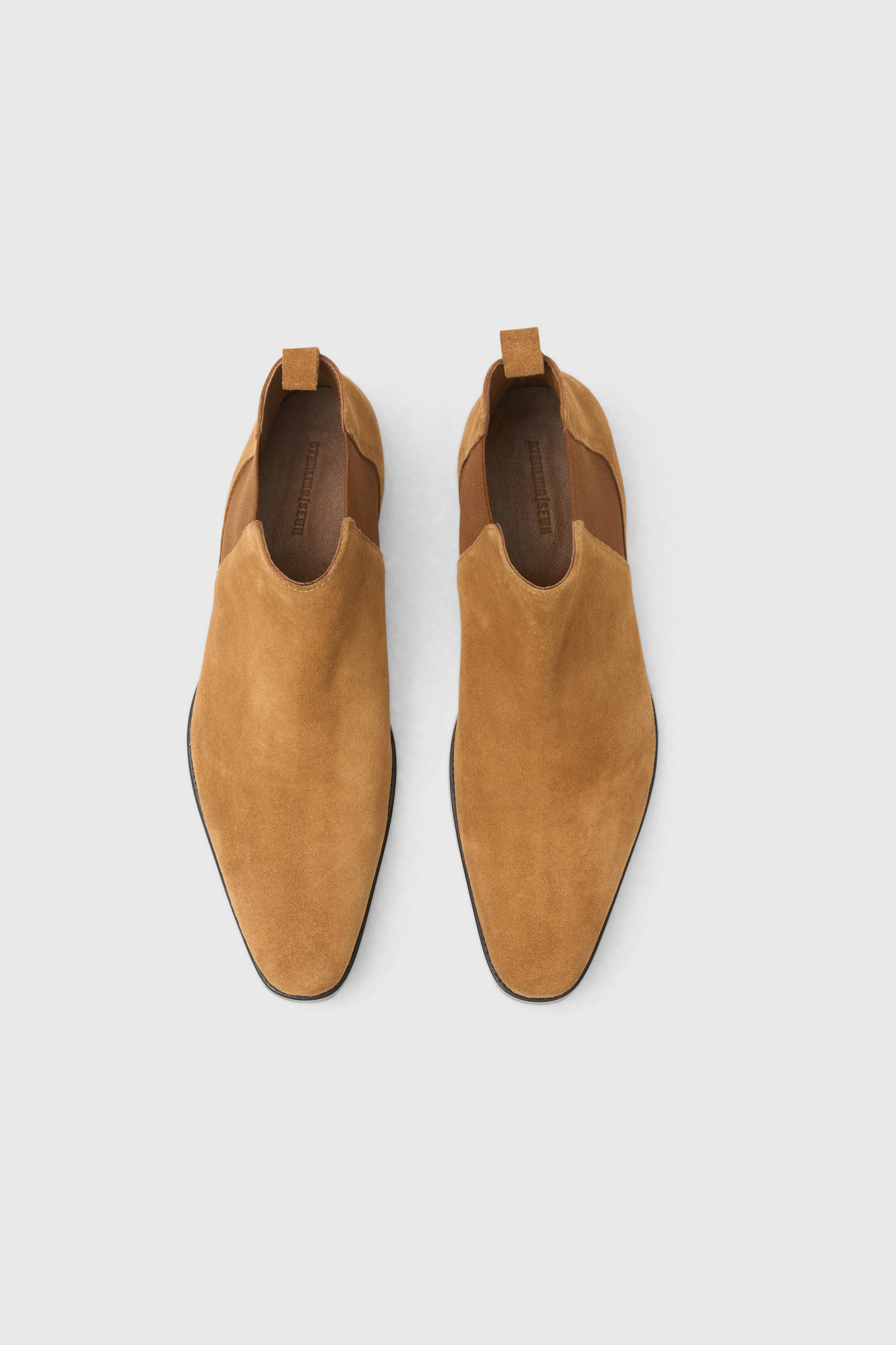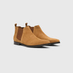 In addition, the close-fitting, ankle-high boots have an elastic side panel, which makes them easy to put on and take off. Whether you're dressing up for work, a date, or a casual outing, these boots will match any outfit and occasion. Don't wait any longer to get a pair of these amazing boots. The Camel Suede Chelsea Boot is definitely the ultimate versatile footwear for the modern man.