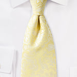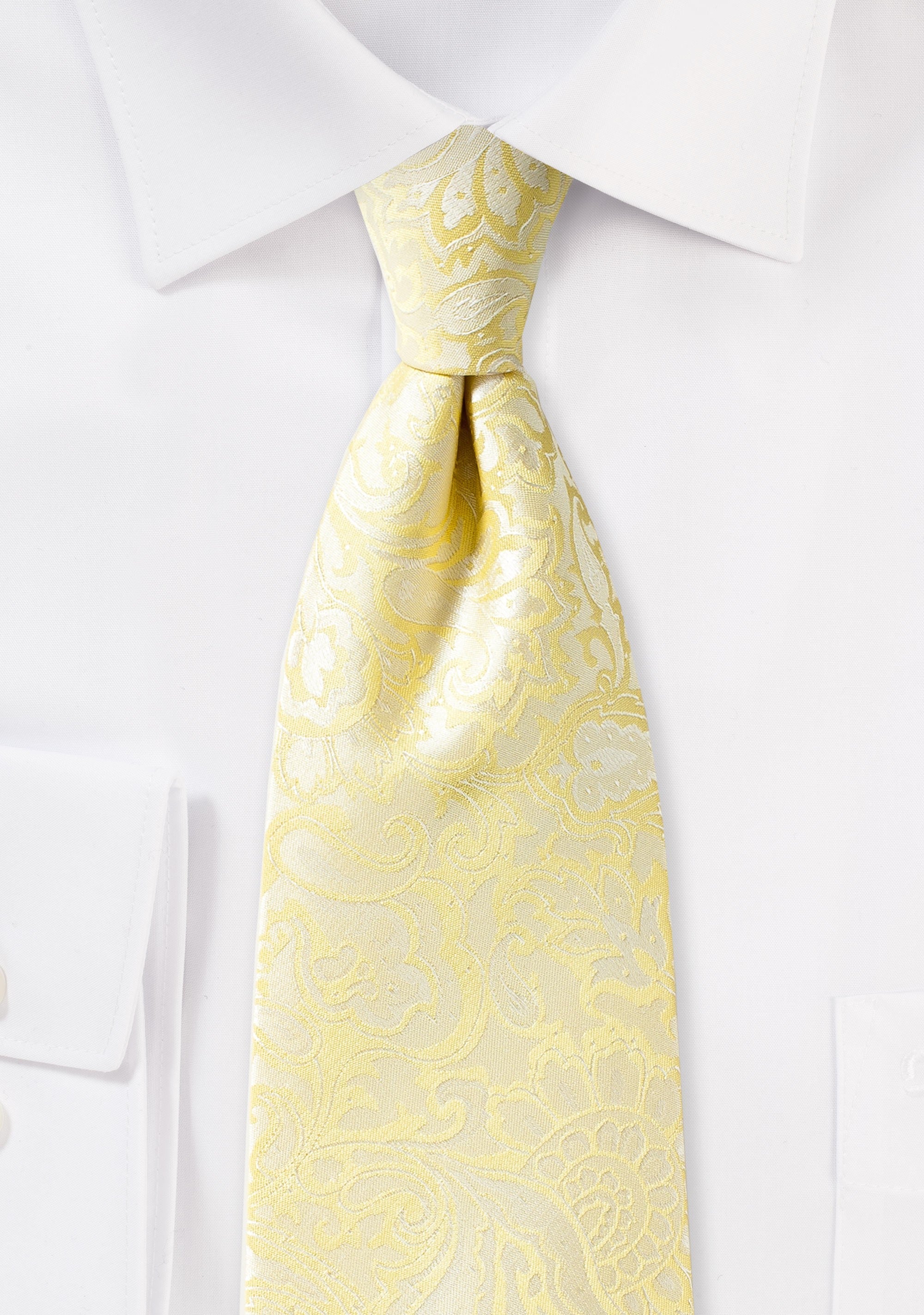 Introducing the Canary Floral Paisley Necktie, a striking accessory that radiates warmth and charm. The vibrant canary yellow hue, combined with intricate floral paisley patterns, creates a necktie that is as bold as it is elegant. This versatile piece effortlessly complements a range of styles, making it a perfect choice for shopping for men's suits or adding a touch of sophistication to a wedding ensemble. The Canary Floral Paisley Necktie is a true statement piece, exuding confidence and charisma. Pair it with a tailored suit for a polished and refined look, or dress it down for a more casual yet stylish appearance. Embrace the sunny allure of the Canary Floral Paisley Necktie and let your personality shine.
