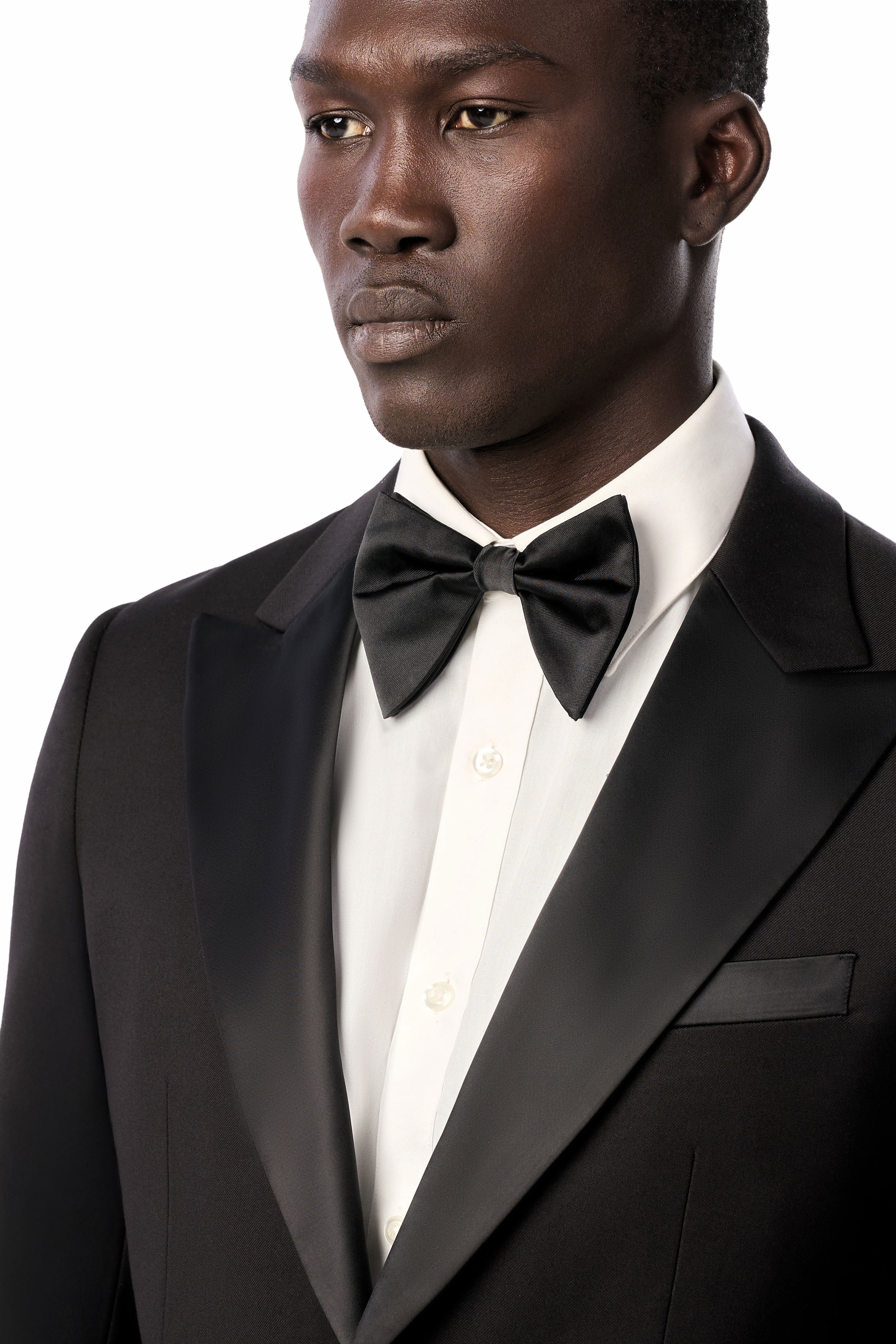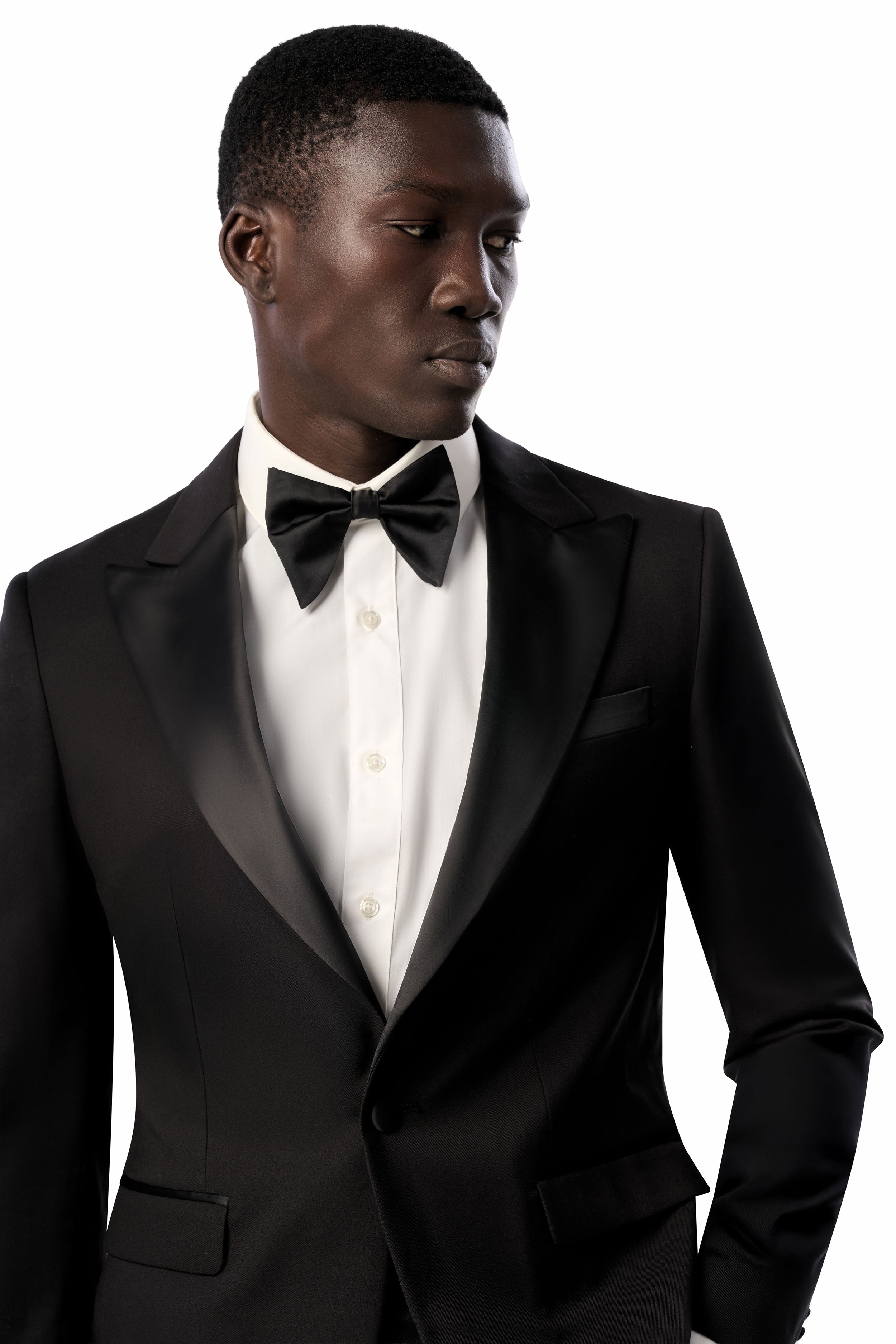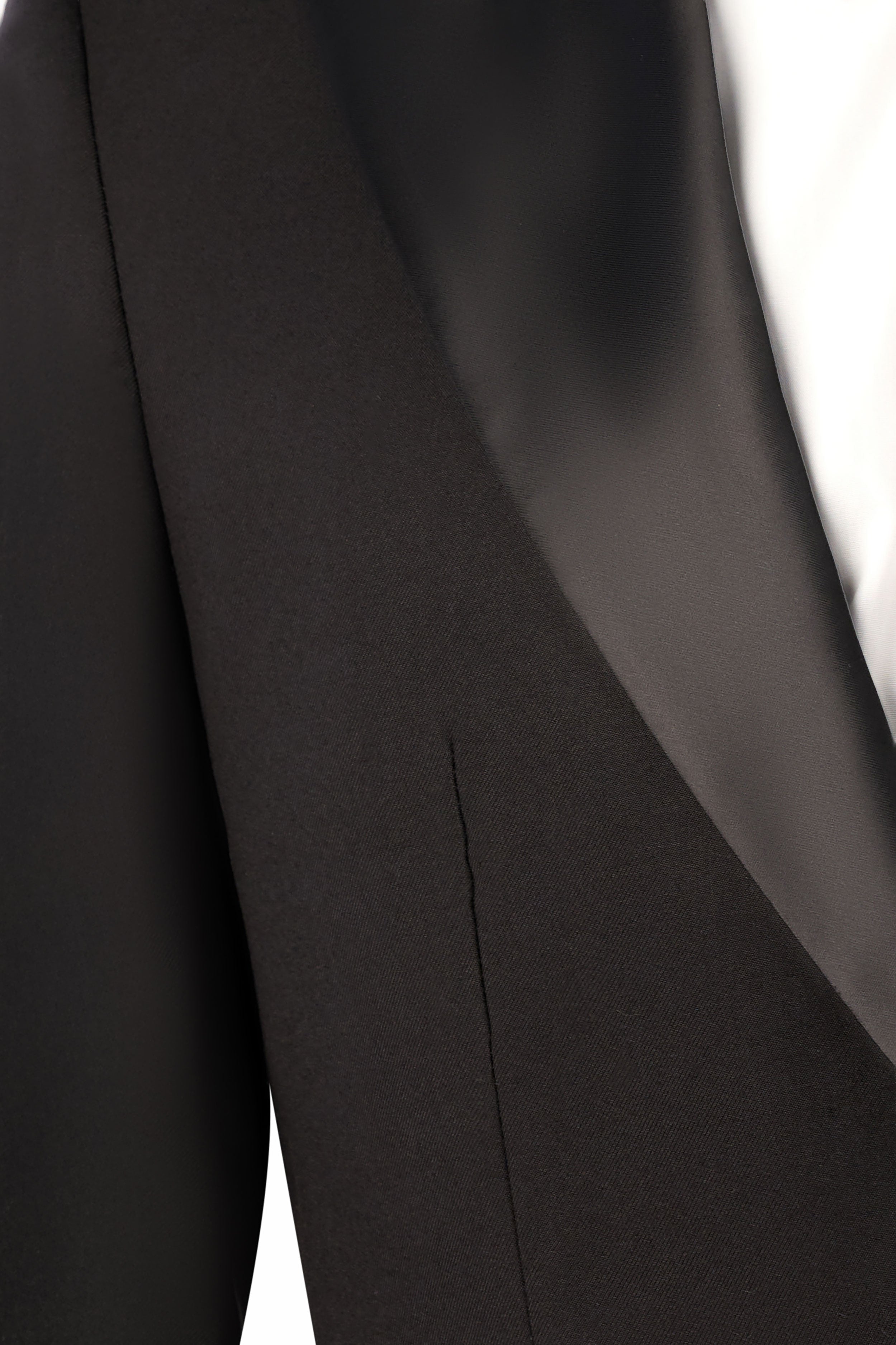 This timeless black tuxedo provides a refined foundation to craft a variety of elegantly stylish looks. For traditional flair, pair it with a white tux shirt, black bow tie, and patent leather shoes. For a creative edge, complement it with a bold shirt, metallic accents, and bit loafers. Regardless of how you style it, this classic black tuxedo has you looking confidently dapper.