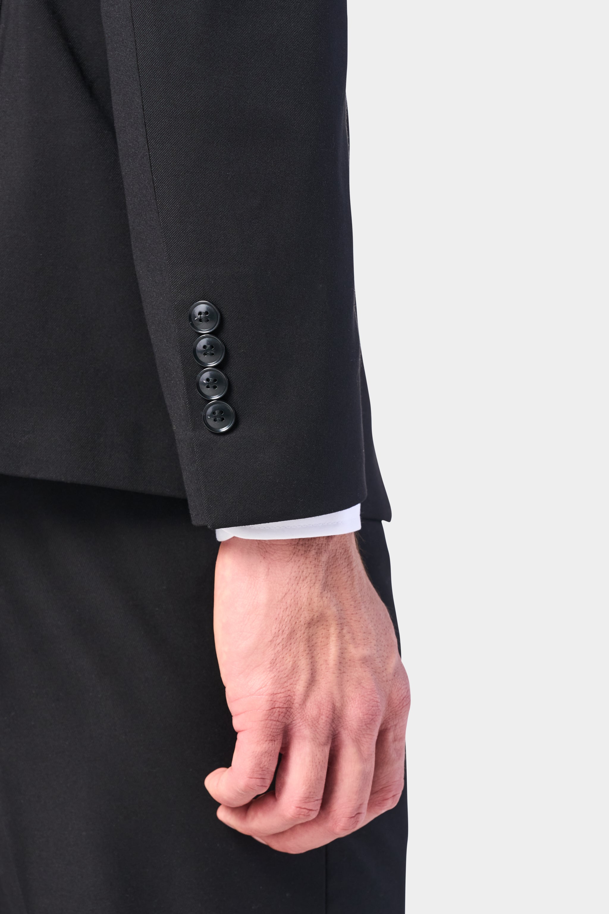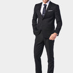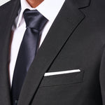 With its simple modern cut and timeless color, this classic black two-button suit is designed to make you look sophisticated and confident. It's a staple piece for any well dressed gentleman's wardrobe. Whether you wear it to work, a wedding, or a meeting, the suit will help you exude professional style and confidence whenever you wear it.