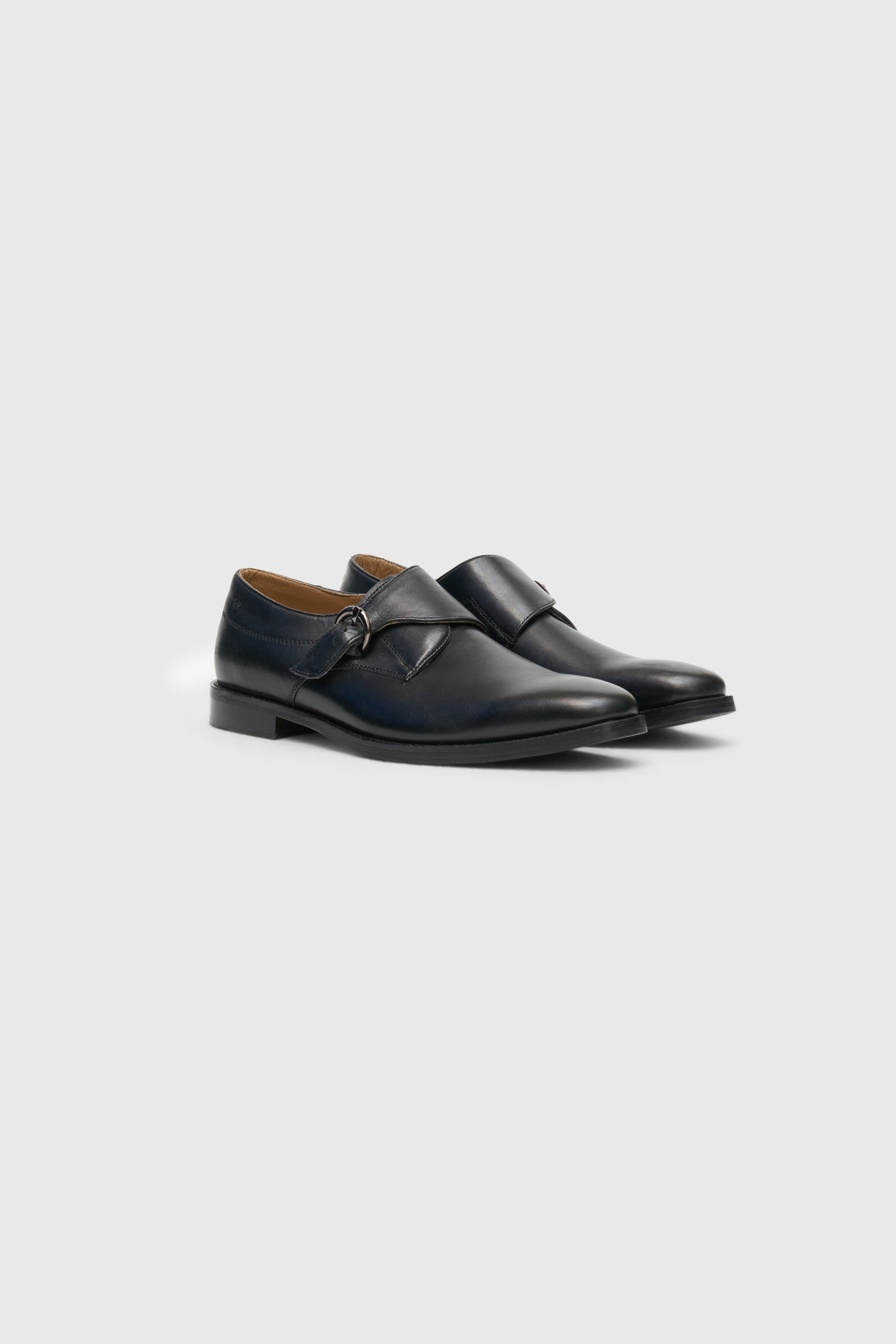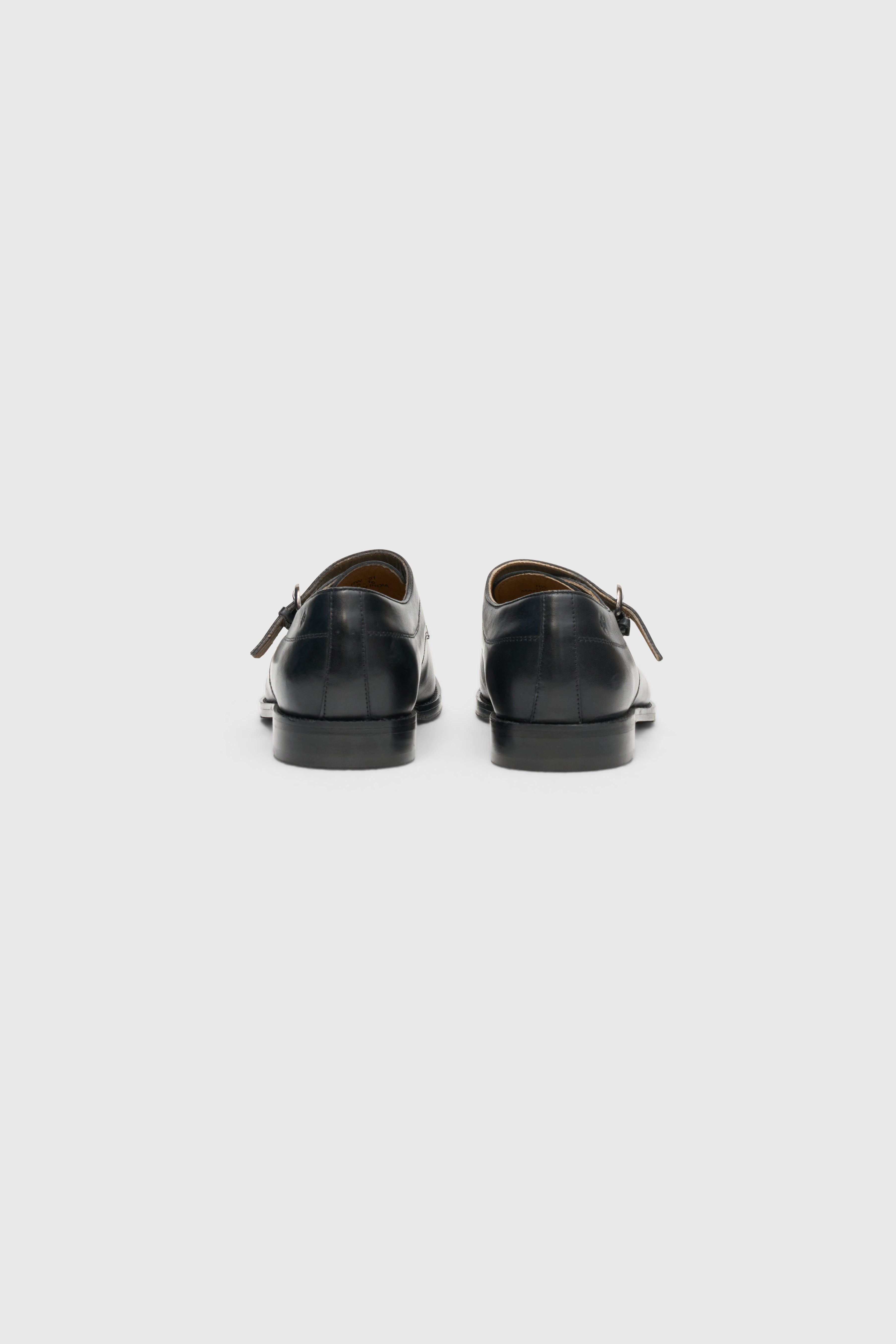Exude refined elegance in these expertly crafted Black Monk Strap Shoes. Made from premium cow leather with clean buckled straps instead of laces, they provide a sophisticated edge for today's modern gentleman. The full leather outsole and rubber overlay deliver durability, traction, and support. Inside the shoe, a supple sheep leather lining surrounds your feet for added comfort.