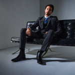 Moreover, versatility is paramount with this suit. Elevate the ensemble by pairing it with a pristine white shirt and a silk tie for formal events. Alternatively, opt for a more relaxed attire by pairing the suit with a light blue button-down shirt and loafers for a smart-casual appearance. The periwinkle blue accents provide a variety of accessory choices to complement the suit's unique pattern.