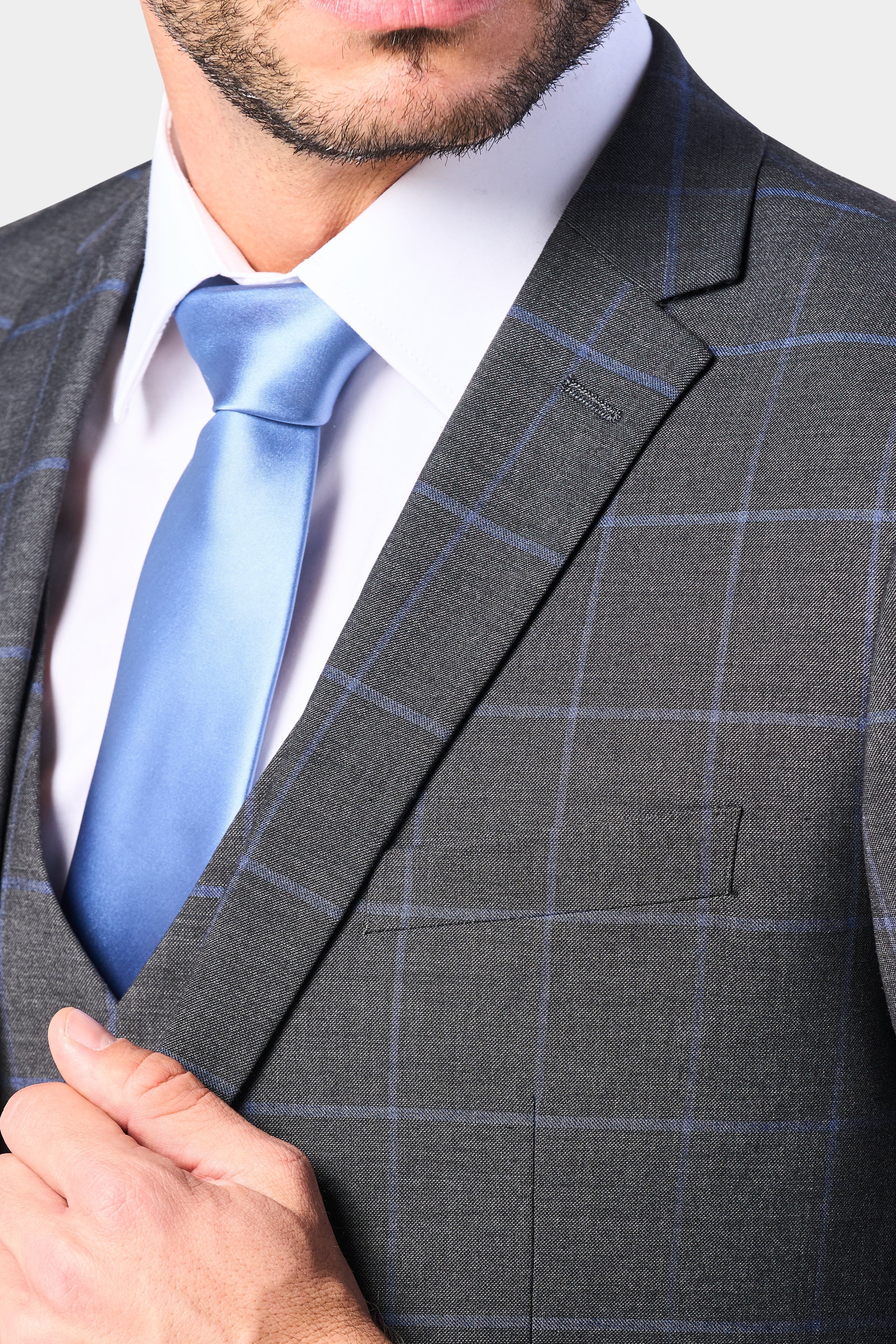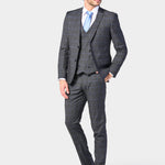 Gray and Periwinkle Blue Window Pane 3 Piece Suit