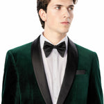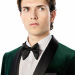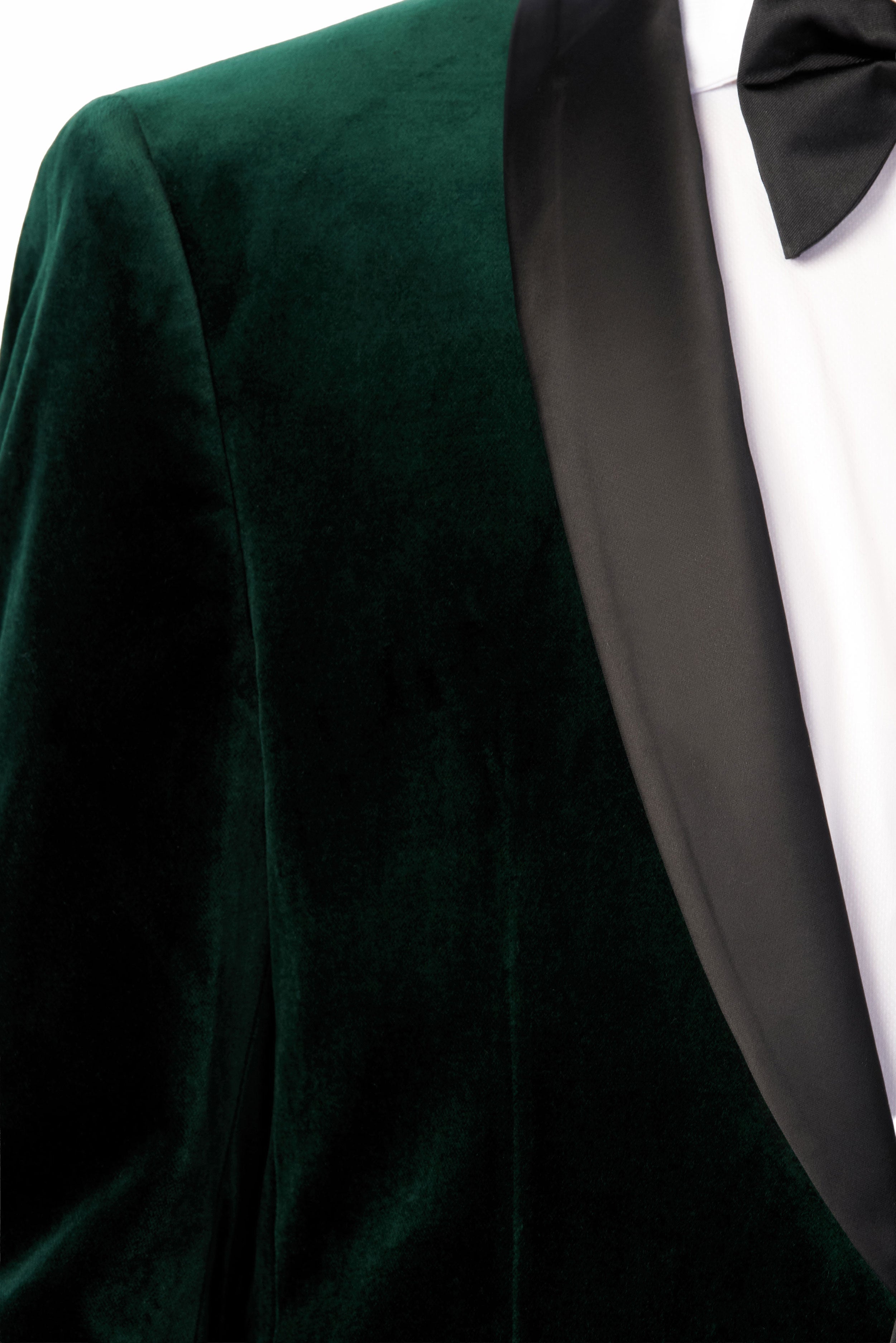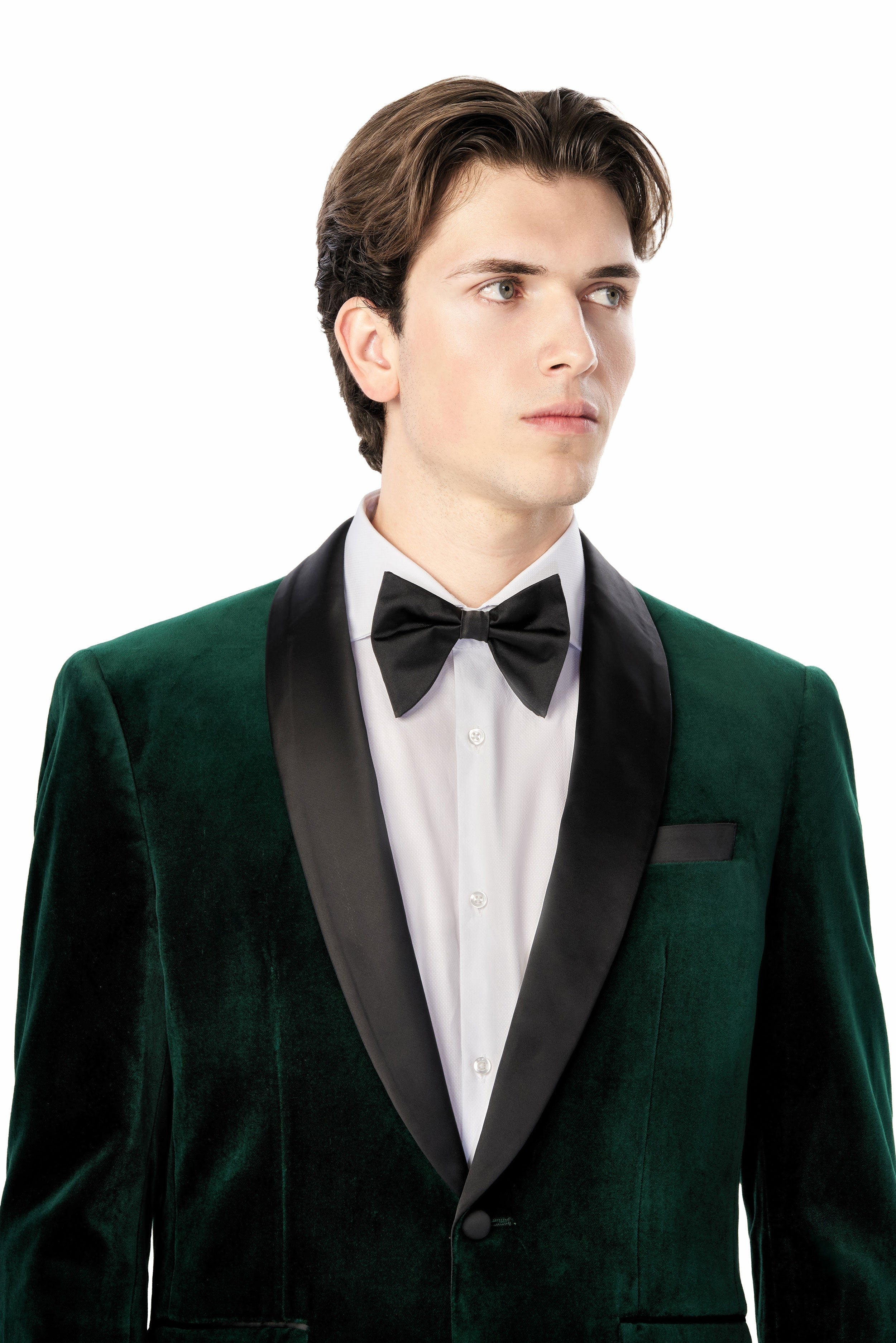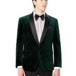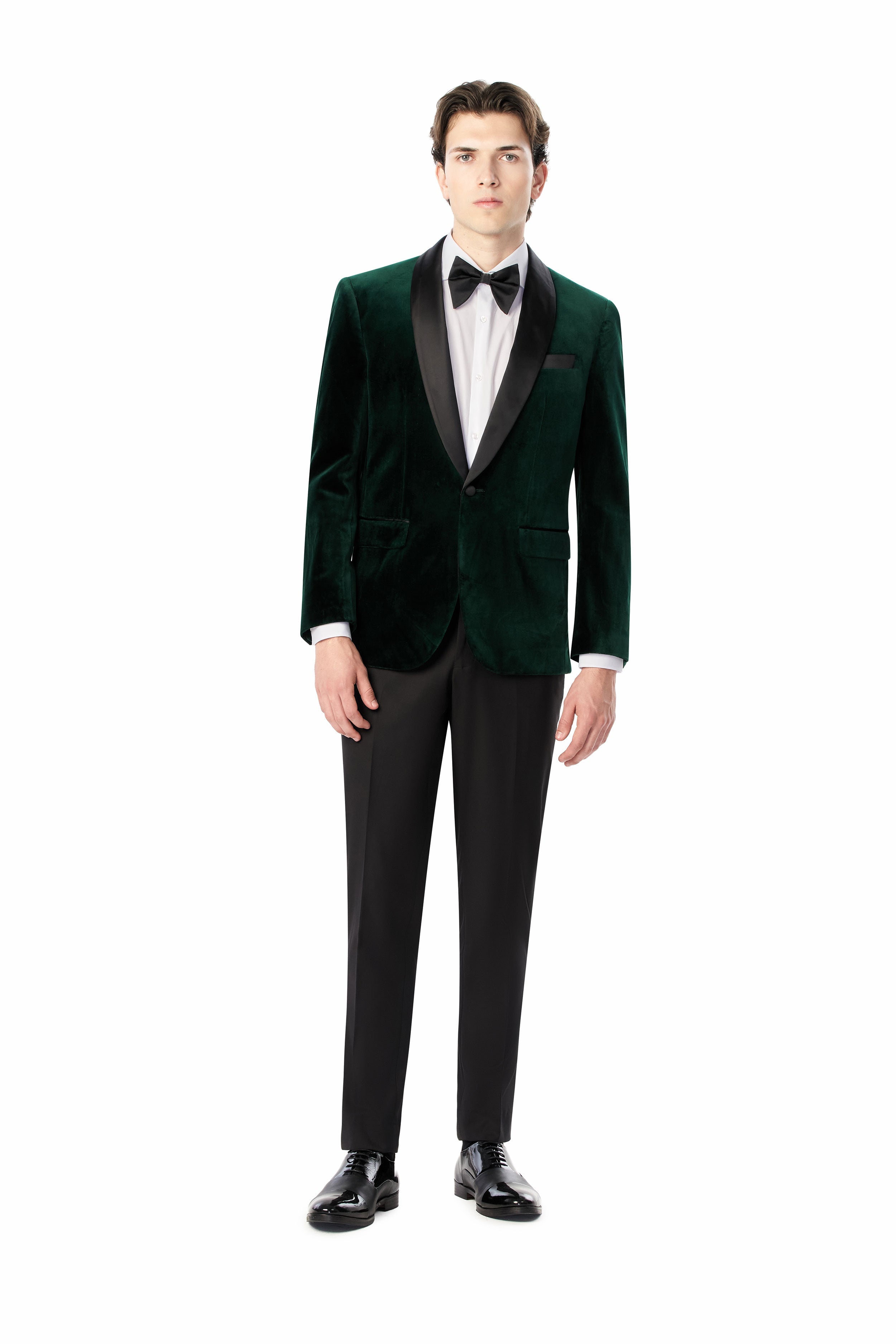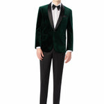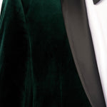 With its elegant green color, shawl lapel jacket, impeccable slim fit, and one-button closure, this tuxedo is a must-have for today's fashionable gentleman who wants to impress at formal black tie events. Whether it is a wedding, a business meeting, or a formal occasion, our green velvet shawl lapel tuxedo is suitable for all your different occasions and will make you look amazing.