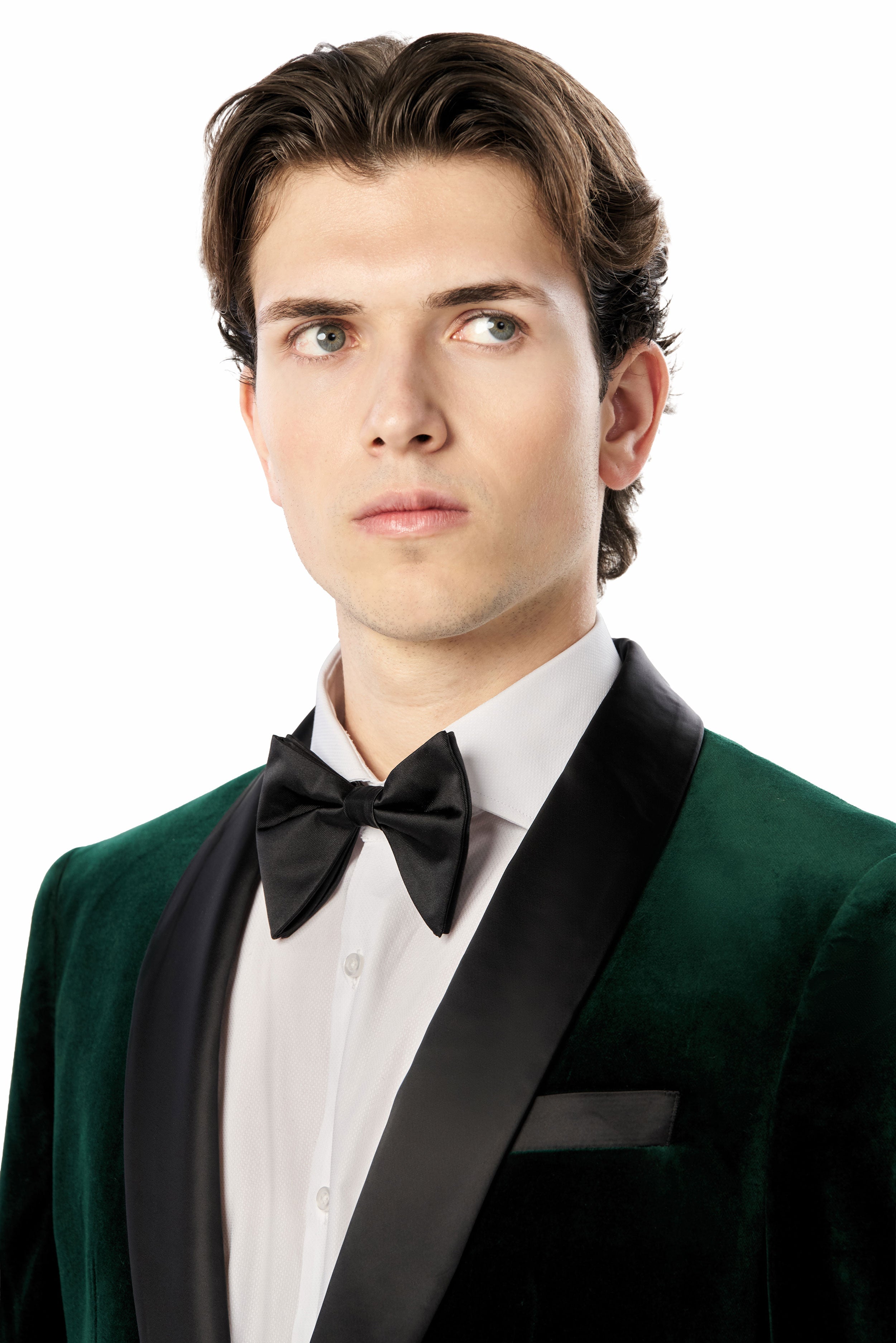 This magnificent green tuxedo is an ideal choice for weddings, business meetings, and dinner nights. Match it with a crisp white shirt, a black bow tie, and patent leather shoes for a classic look. You can also accessorize your suit with a colorful pocket square and leather loafers for an impressive look. The deep green color provides a stylish and versatile base for creative black tie accessories.