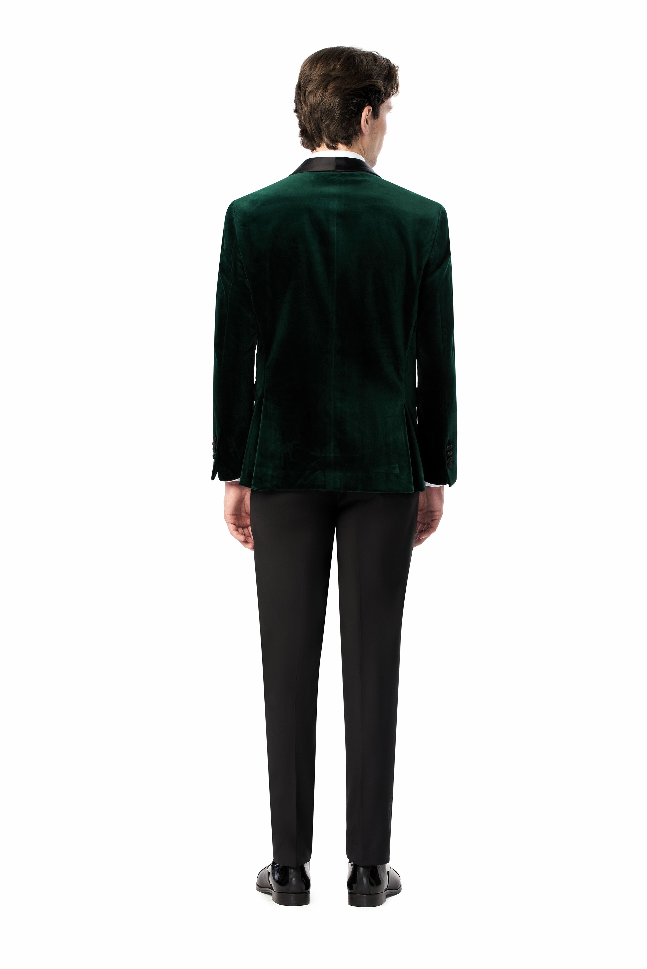Beautifully made from a luxurious cotton velvet blend, the lightweight fabric offers comfort and flexibility while preserving the jacket's fitted structure. The material is wrinkle-free for a neat appearance. The rich green color reflects elegance and charisma, perfect for formal events. The harmonious combination of the green color and the cotton blend enhances the suit's style and appeal.