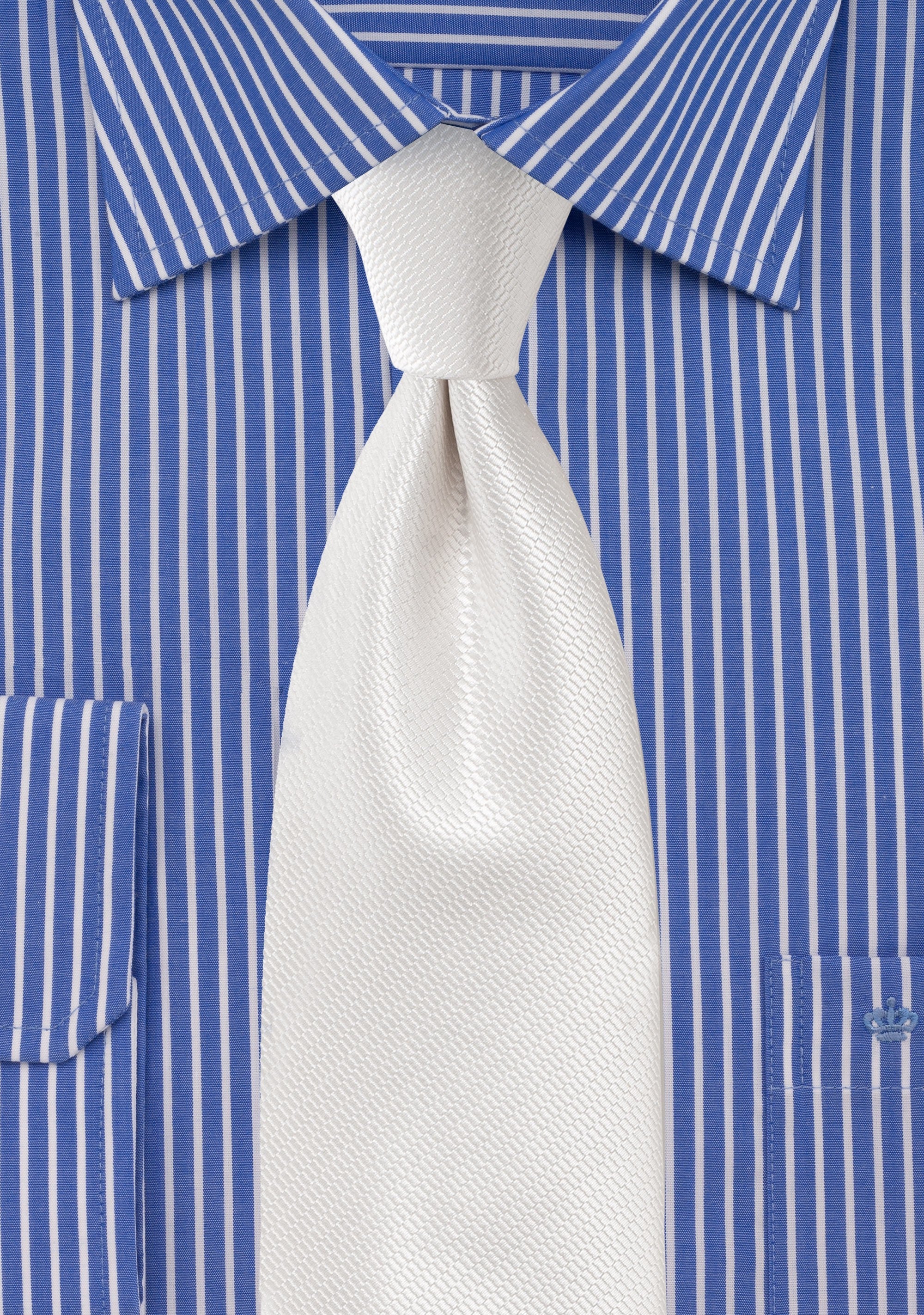 An Ivory Small Texture Necktie can be a sophisticated and versatile accessory to add a touch of elegance to a variety of formal occasions, including shopping for suits, tuxedos, and men's suits for weddings. When shopping for suits, an ivory small texture necktie can be paired with a variety of suit colors, such as navy blue, charcoal gray, or even beige. It's a subtle and elegant choice that can complement any outfit. When shopping for a tuxedo, an ivory small texture necktie can be paired with a classic black tuxedo for a timeless and sophisticated look. It can also be paired with a white tuxedo for a subtle and refined contrast. When shopping for men's suits for a wedding, an ivory small texture necktie can be a great option to match the groom's outfit or to complement the wedding theme. It can be paired with a variety of suit colors, such as navy blue, charcoal gray, or even light gray. However, it's important to ensure that the tie complements the overall color scheme and doesn't clash with other colors in the wedding decor. Overall, an ivory small texture necktie is a versatile and elegant accessory that can be paired with a variety of suit colors and styles for a polished and refined look. It's a great option for anyone who wants to add a touch of sophistication and style to their formal attire.