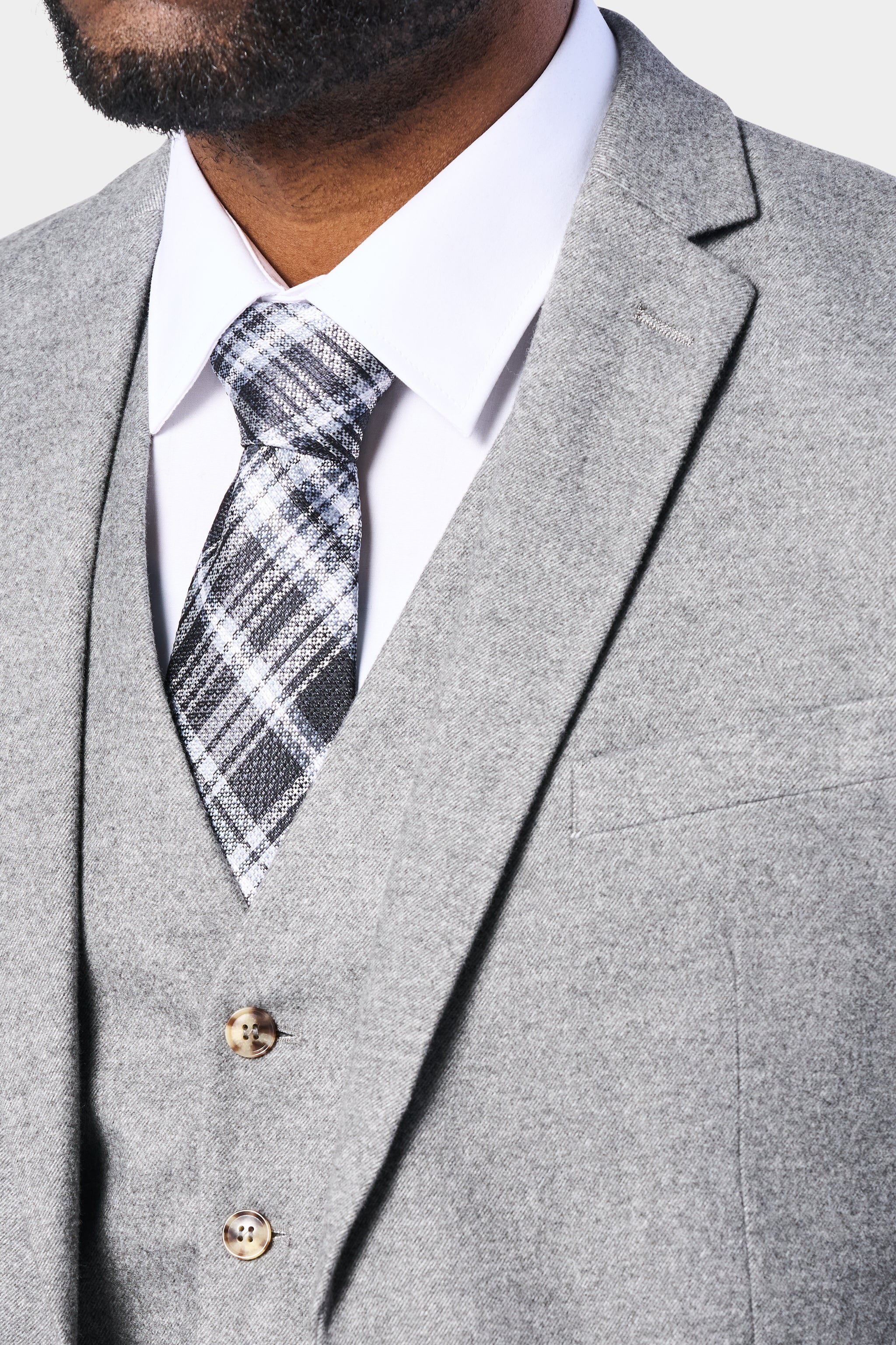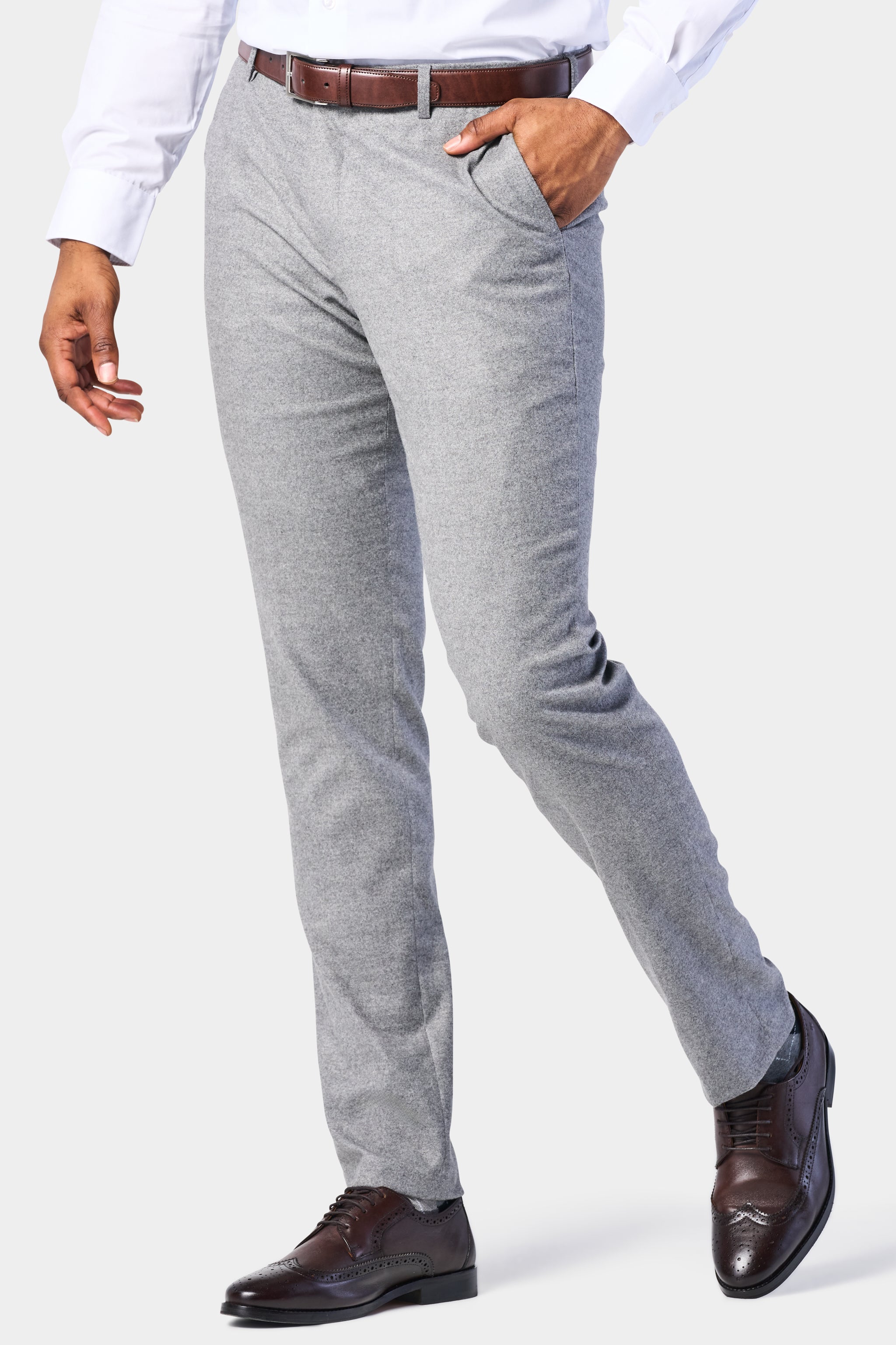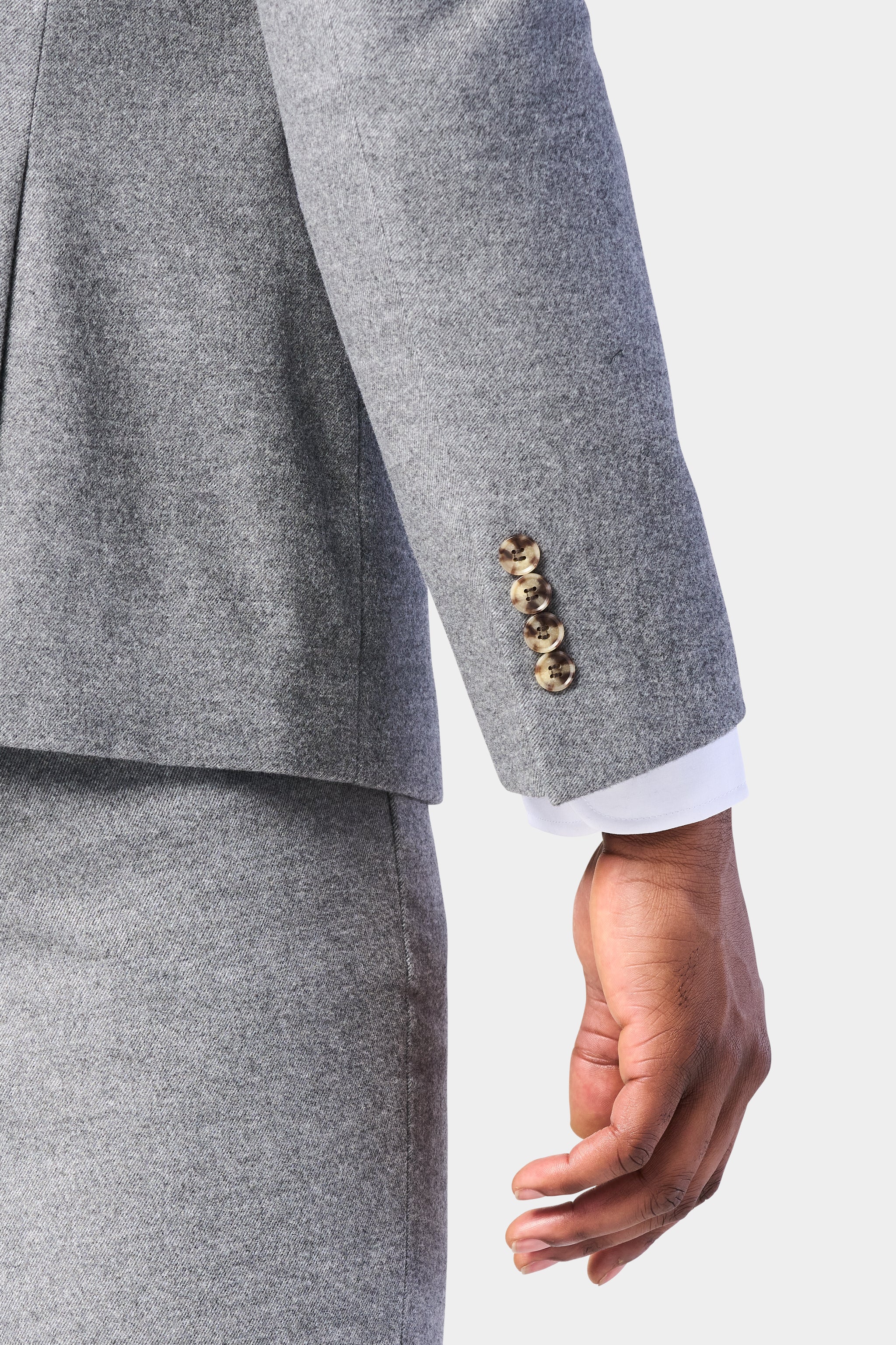 Masterfully crafted from a rich poly-viscose and spandex flannel fabric with a refined cashmere touch, this suit delivers unparalleled quality and comfort. The soft gray color provides a refined, modest base for the textured flannel. Also, the suit's material helps create an incredible depth and visual richness. The sturdy fabric ensures lasting shape with each wear while providing cozy warmth and breathability.