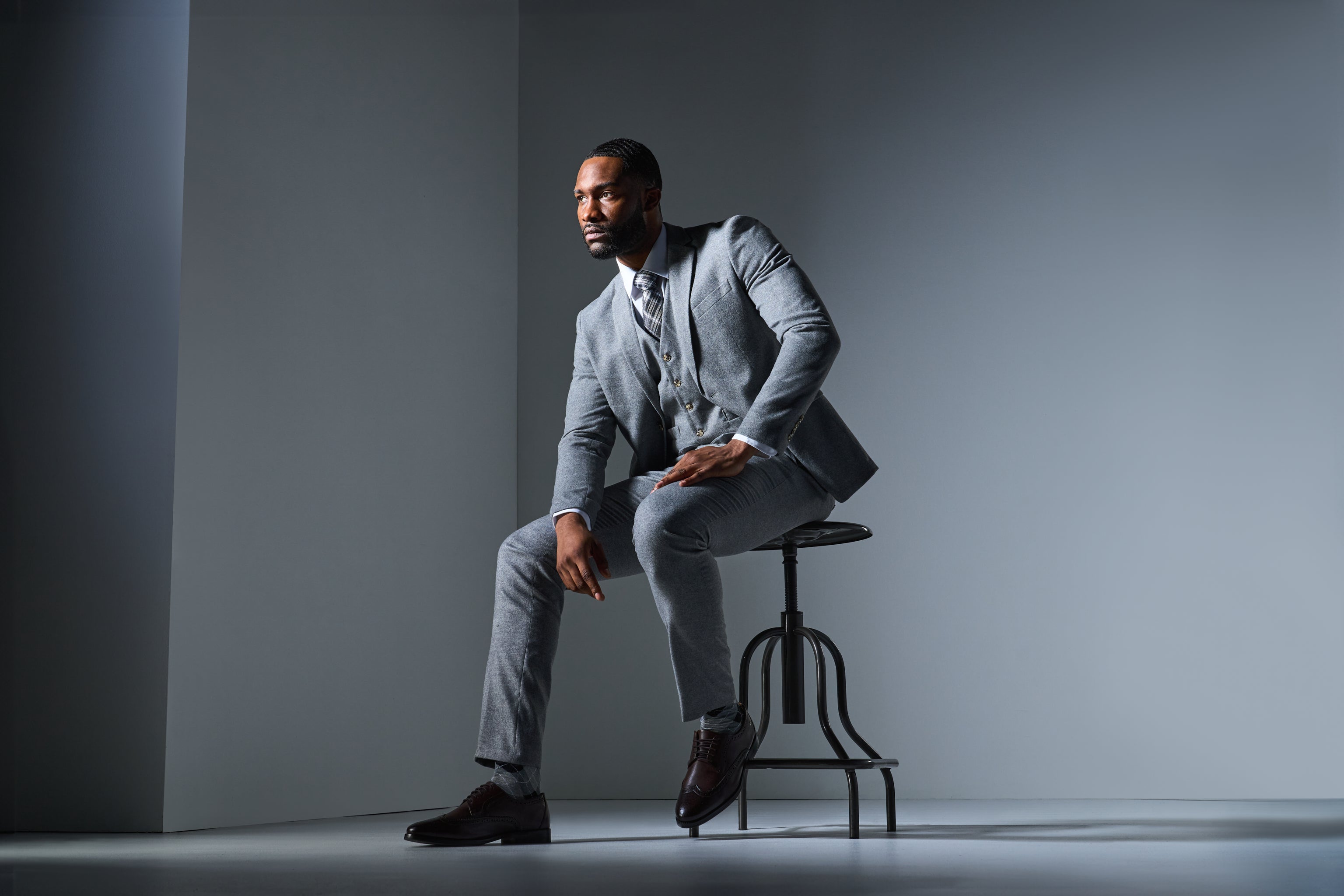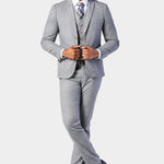 In addition, the structured light gray jacket features peak lapels as well as a two-button front closure. It also comes with flapped pockets and double rear vents to ensure ease of movement. The coordinating vest adds traditional layered appeal with its five-button front and welt pockets. The flat-front pants add more style with the slant pockets. You can also customize the unfinished hems to your preferred length and to achieve a sleek look.
