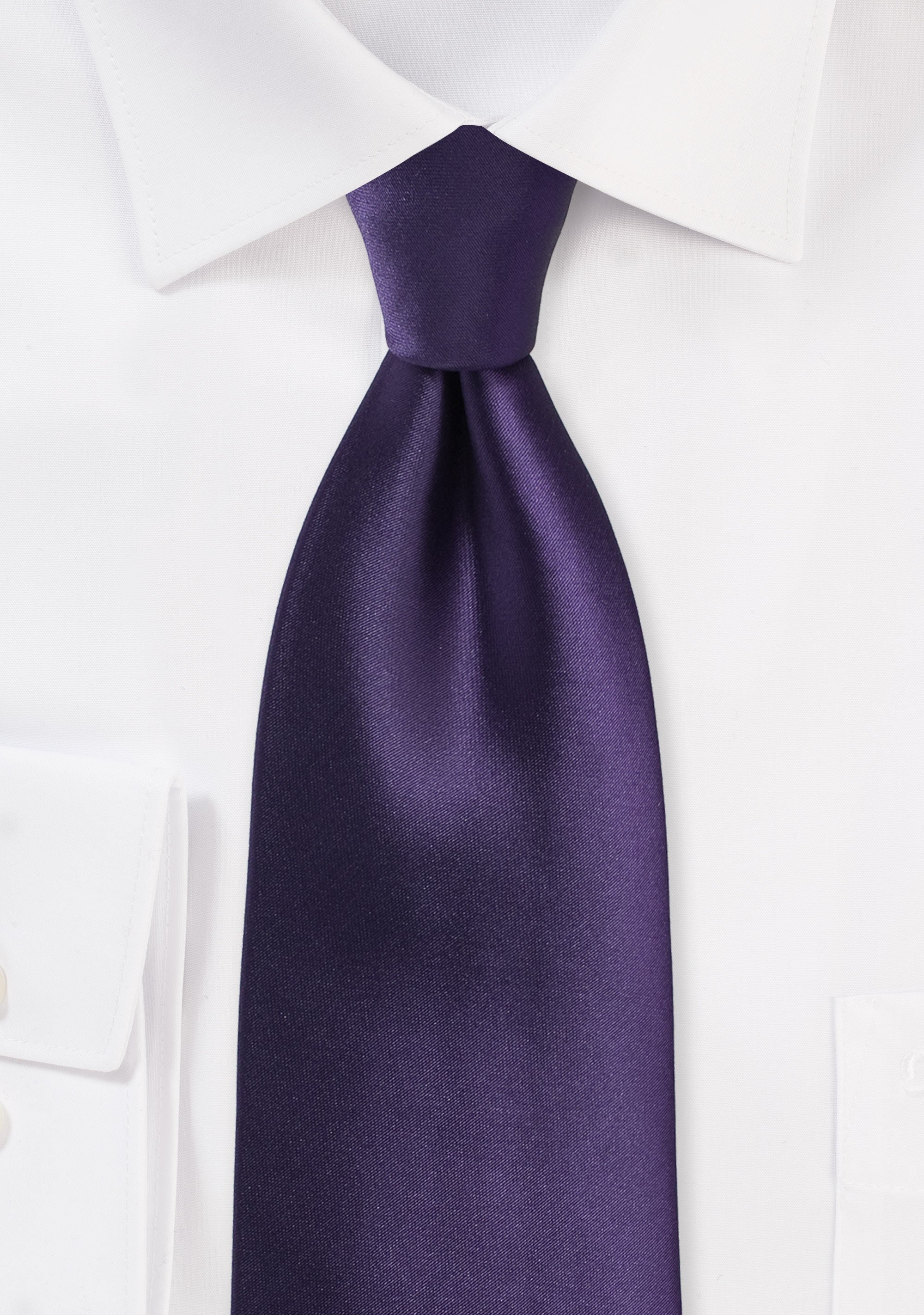 Italian fashion designer Puccini has dived into his mind and created a new shade of purple for this appealing solid color necktie. He has dubbed this new shade of purple "berry purple." A vivid purple that is warm and inviting enough for an upscale dinner party with friends but also sophisticated and understated enough for any professional occasion. This necktie is likely to have people talking about your sense of style if you wear it with a suit in a deeper hue, such as black or charcoal grey, and a dress shirt in any shade of white. This vibrant flannel, window-pane check suit in a grey and distinctive tab-collar dress shirt is another fantastic way to wear this tie, which is easy to pair with other items and is "seasonless."