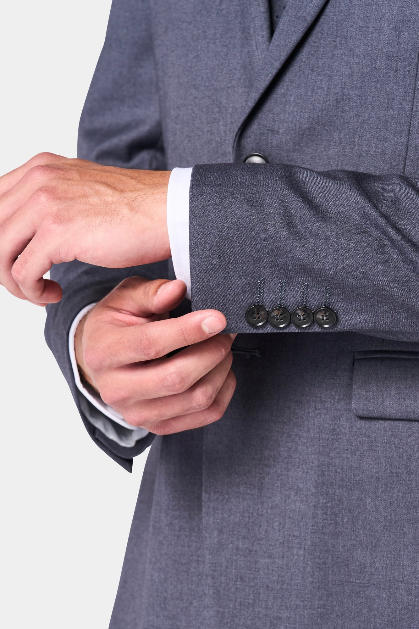 With its meticulous tailoring, stretch fabrics that retain shape, and versatile medium gray color, this two-button suit epitomizes timeless sophistication. A refined essential designed to instill confidence and project authority for today's successful modern gentleman. Whether you wear it to work, a wedding, or a formal event, this suit will make you look stunning and elegant.