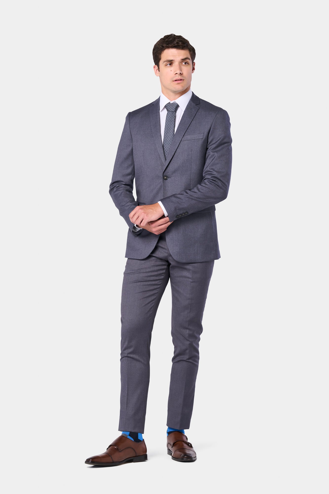 This versatile medium gray suit transitions effortlessly from important board meetings to formal weddings and events. For professional settings, pair it with a crisp light blue shirt, subtly patterned silk tie, and cap-toe oxfords for an authoritative look. For formal occasions, complement it with a white shirt, colorful pocket square, and shined leather loafers. The medium gray color makes an instant statement that will help you look exquisite and sophisticated.