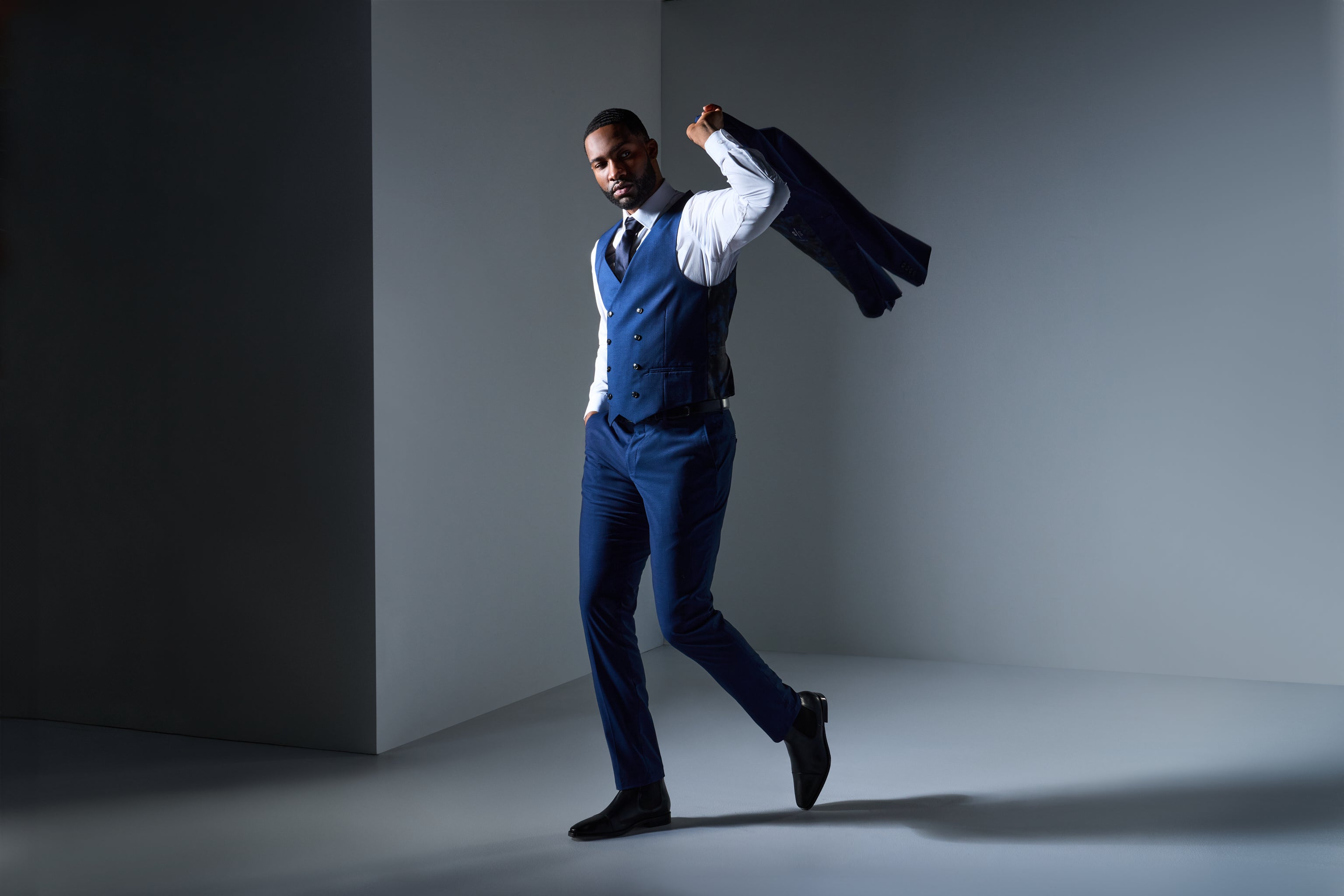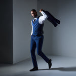 Moreover, the jacket of the suit showcases impeccable tailoring, boasting a contemporary slim fit that accentuates the body's contours for a polished silhouette. Traditional elements such as the notched lapels and two-button front closure are complemented by modern touches like side vents, enhancing both style and mobility. The vest, complete with an adjustable back strap, ensures a personalized fit. Additionally, the trousers, featuring a flat-front design and unfinished hems, contribute further to the ensemble's sophistication and can be tailored to your desired length for a bespoke finish.