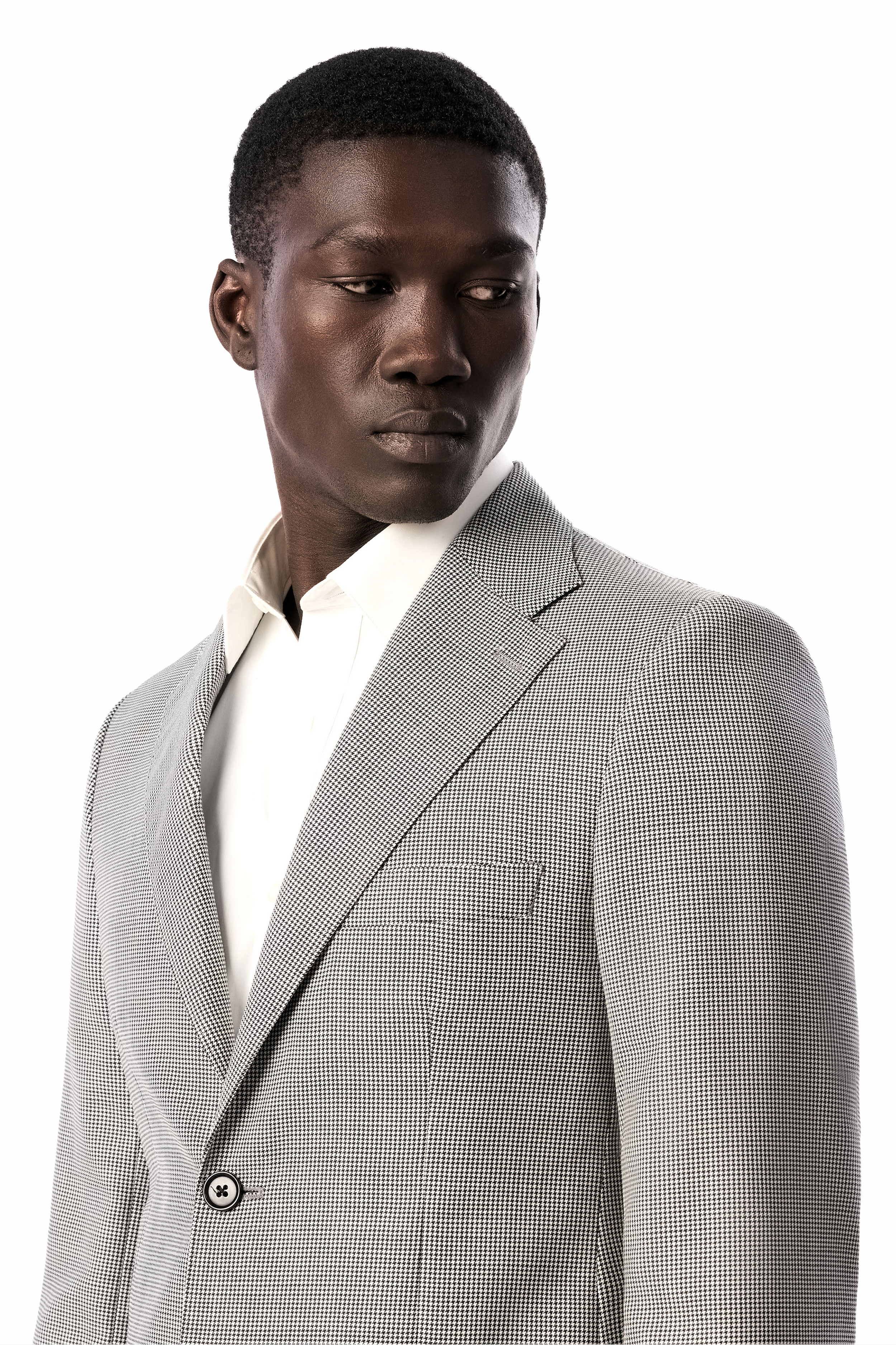 Details and Features The single-breasted jacket features a shawl lapel and four-button detailing on the sleeves. It has a slim fit to highlight your physique and elevate your look. The jacket also has jetted pockets, a chest pocket, and no vents in the back. The pants are unhemmed, so you can customize them to your preferred length.