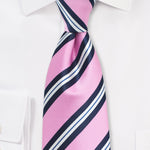 Preppy Pink, Blue, and White Repp&Regimental Striped Necktie