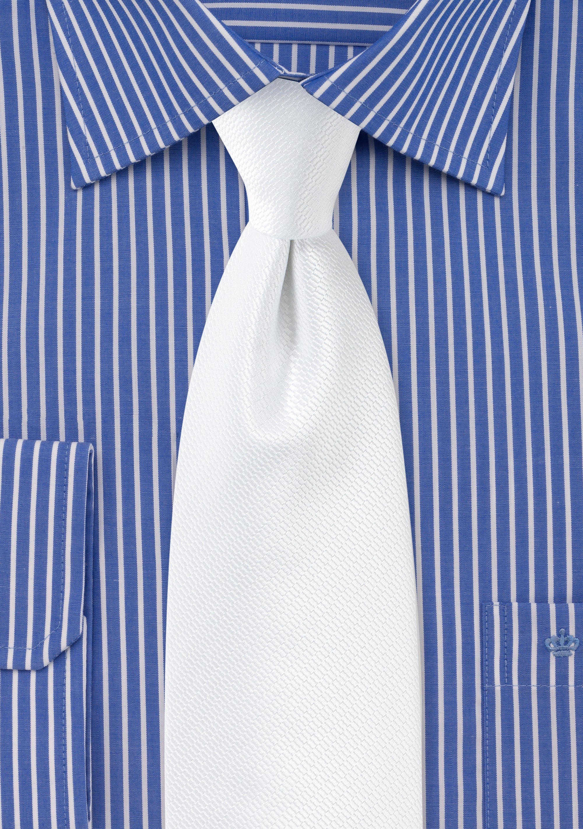 A Pure White Small Texture Necktie can be a classic and timeless accessory to add a touch of elegance and sophistication to a variety of formal occasions, including shopping for suits, tuxedos, and men's suits for weddings. When shopping for suits, a pure white small texture necktie can be paired with a variety of suit colors, such as navy blue, charcoal gray, light gray, or even beige. It's a clean and classic choice that can complement any outfit. When shopping for a tuxedo, a pure white small texture necktie can be paired with a classic black tuxedo for a sleek and sophisticated look. It can also be paired with a white tuxedo for a clean and elegant contrast. When shopping for men's suits for a wedding, a pure white small texture necktie can be a great option to match the groom's outfit or to complement the wedding theme. It can be paired with a variety of suit colors, such as navy blue, charcoal gray, or even light gray. However, if the wedding is more formal, it's best to pair it with a black or white suit or tuxedo. Overall, a pure white small texture necktie is a classic and timeless accessory that can be paired with a variety of suit colors and styles for a polished and refined look. It's a great option for anyone who wants to add a touch of elegance and sophistication to their formal attire.