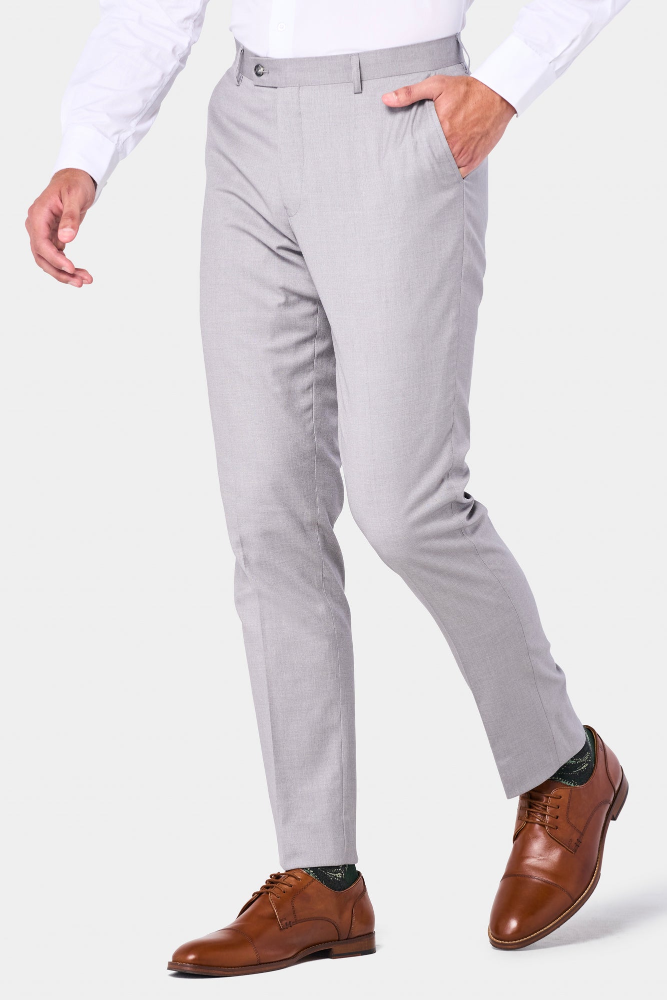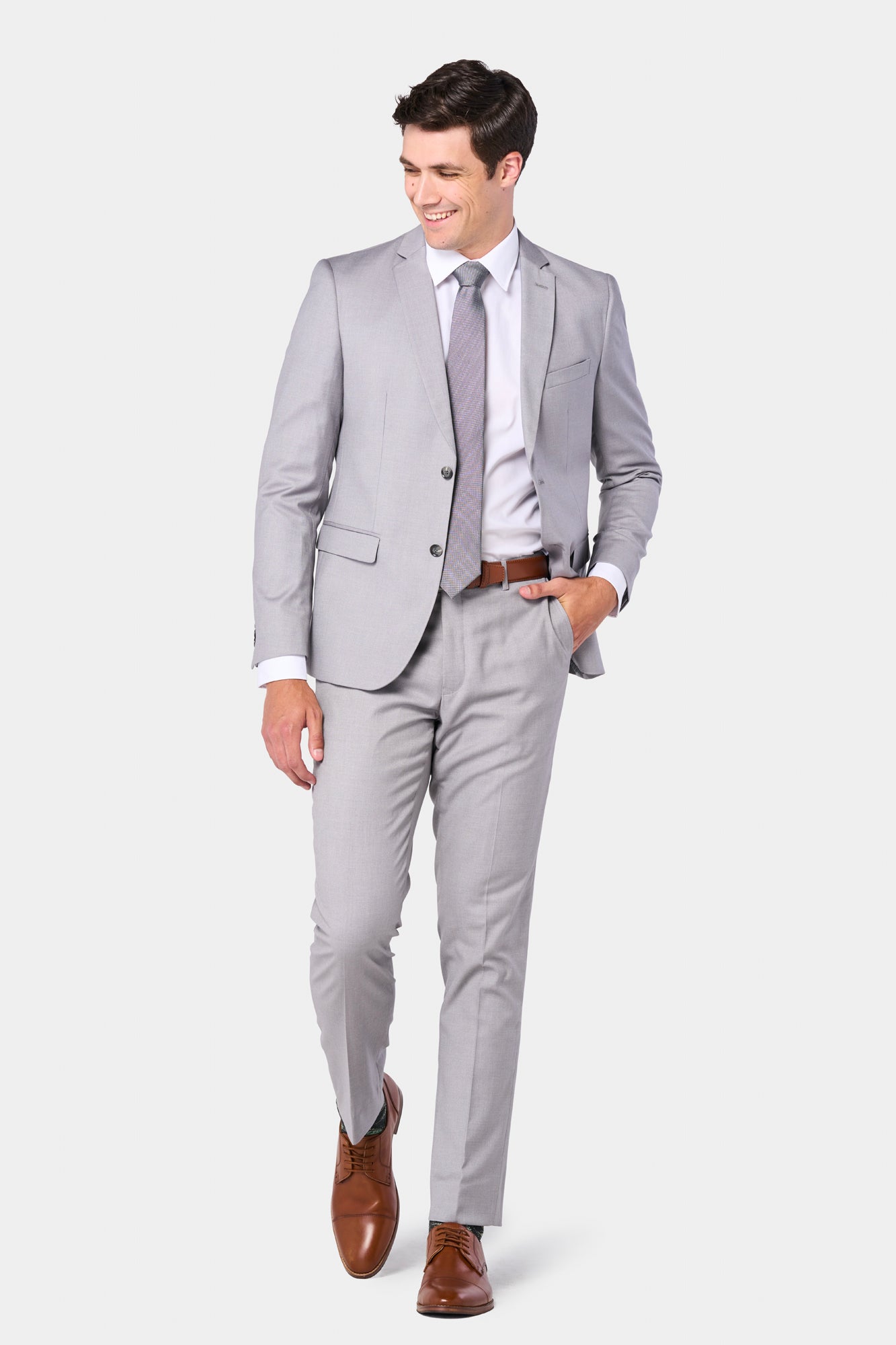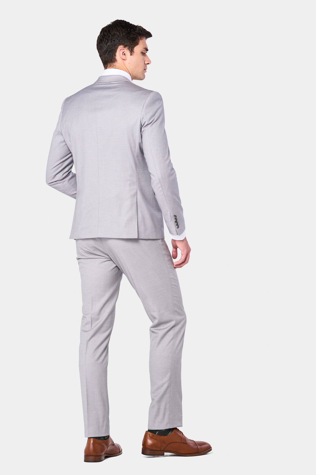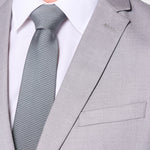 Equally fitting for boardrooms, weddings, or galas, this versatile silver-gray suit perfectly complements your wardrobe. For important meetings, pair it with a light blue shirt, patterned tie, and oxfords for an authoritative look. For formal occasions, mix with a white shirt, pocket square, and shined loafers. The silver-gray color makes a simple statement that will help you look polished and sophisticated.