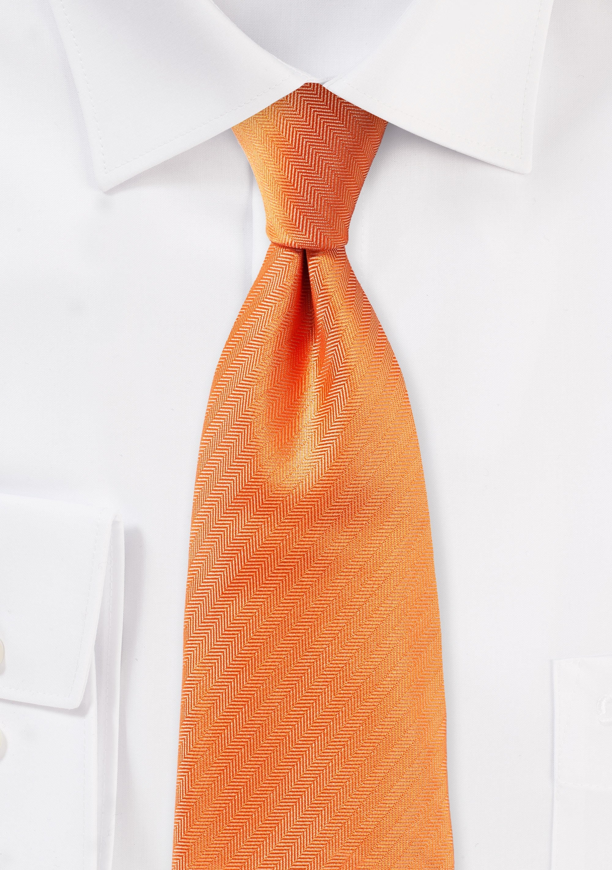 Introducing the Tangerine Herringbone Necktie, a sartorial masterpiece that exudes both sophistication and charisma. This eye-catching accessory is bound to turn heads with its vibrant tangerine hue and timeless herringbone pattern. Pair it with a crisp white dress shirt for a bold and contemporary look that demands attention, making it the perfect choice for both formal events and business meetings. Whether you're shopping for mens suits or preparing for a wedding, this necktie effortlessly complements a variety of suit colors, from classic navy to modern charcoal gray. Elevate your style game and make a lasting impression with the Tangerine Herringbone Necktie—a symbol of refined taste and effortless elegance.
